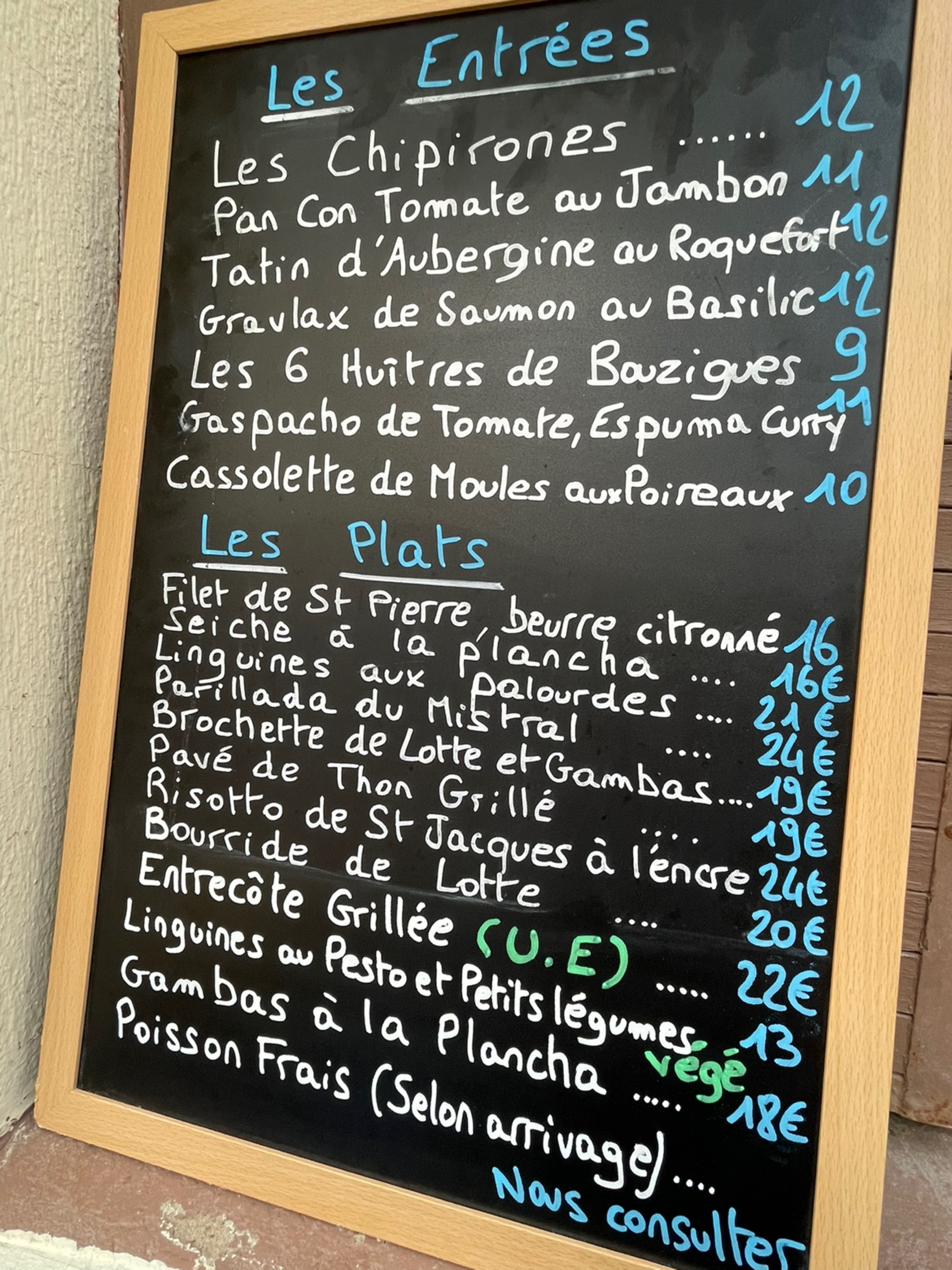 Nous avons très bien mangé ce vendredi, service rapide serveur très pro et réactif, cuisine gourmande et délicieuse. Nous avons testé les chipirons en entrée puis les linguines à la créme et aux palourdes , et des seiches à la plancha, pommes de terres et aiolie. Nous recommandons ce restaurant si vous souhaitez passer un bon moment aux accent du sud.