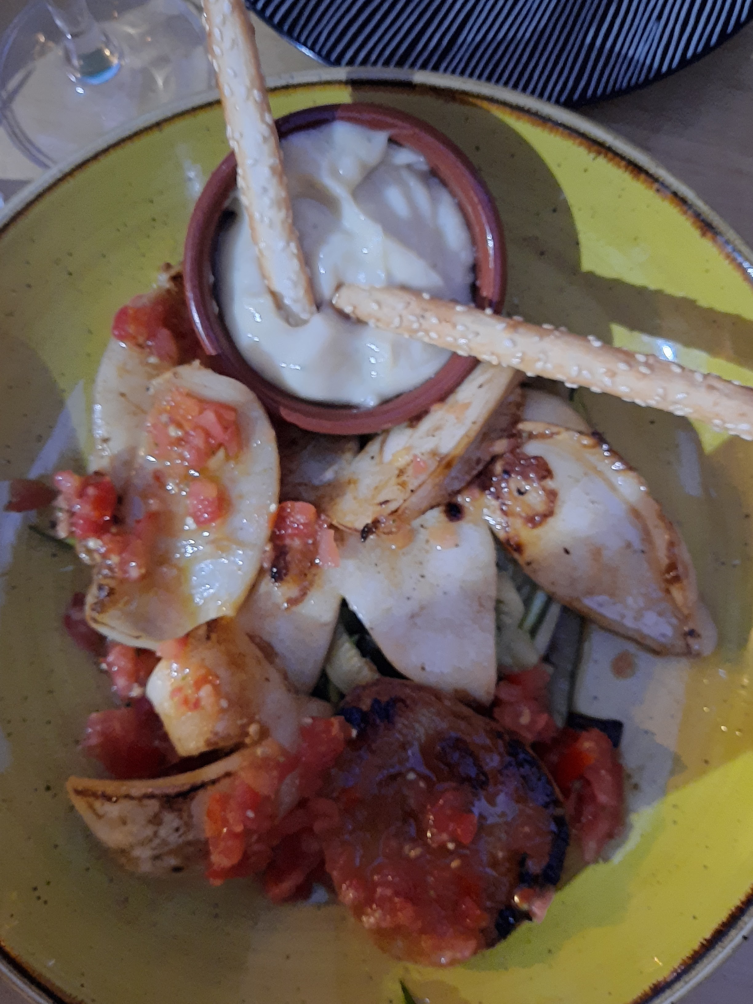 Je conseille ce restaurant serveur et serveuse très serviables et sympathiques. Le repas était tout aussi bon. En entrées nous avons pris un saumon garvlax et huître et plateau de coquillages. Top. En plat un tartare de thon au couteau, sèche plancha et assiette poisson. Un bonheur sur les papilles et les mamilles lol. Des photos valent mieux qu'un long discours.