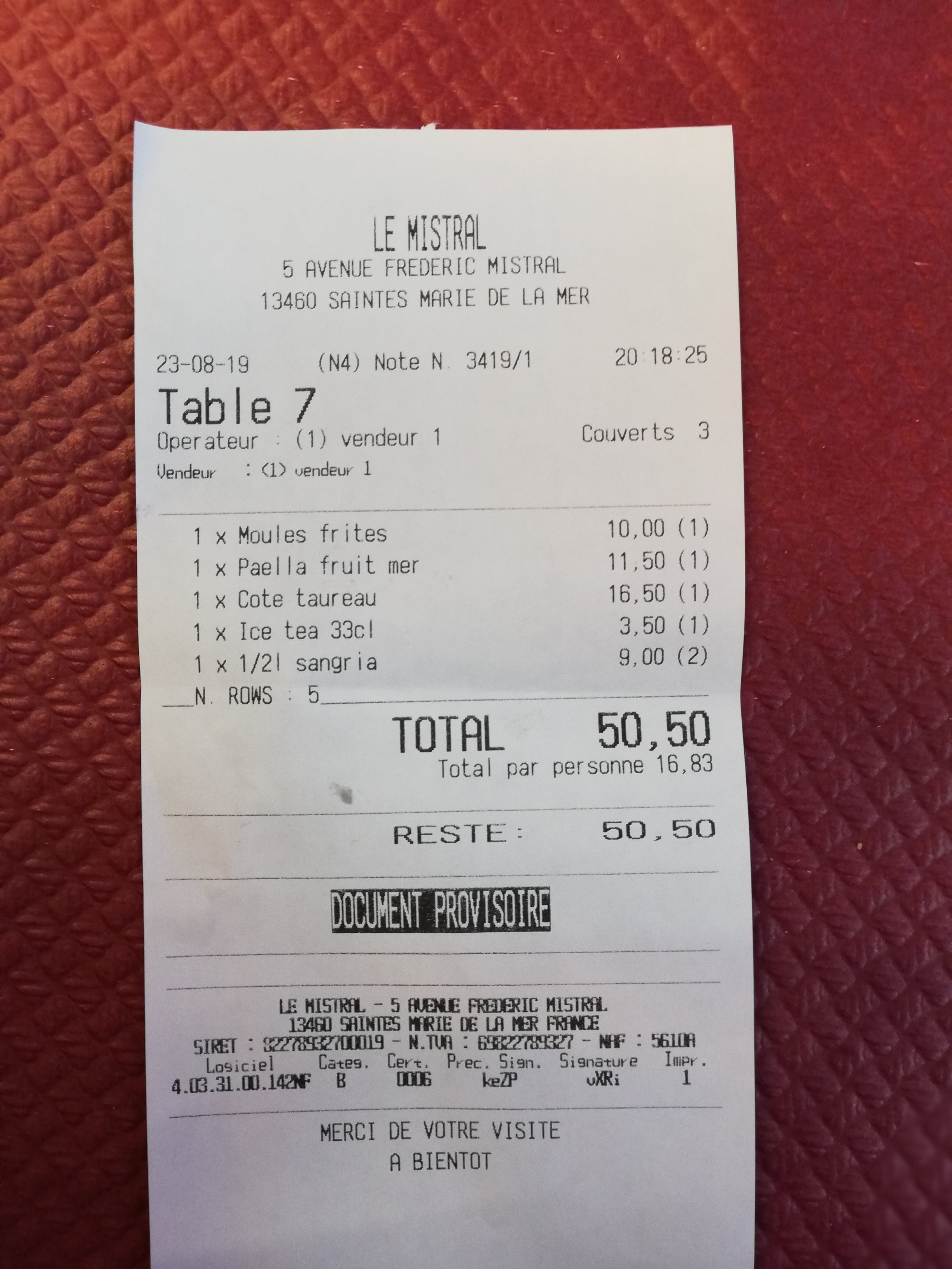 Très bonne expériences au saintes maries de la mer je vous conseille la côte de taureau la cuisson était parfaite je recommande !