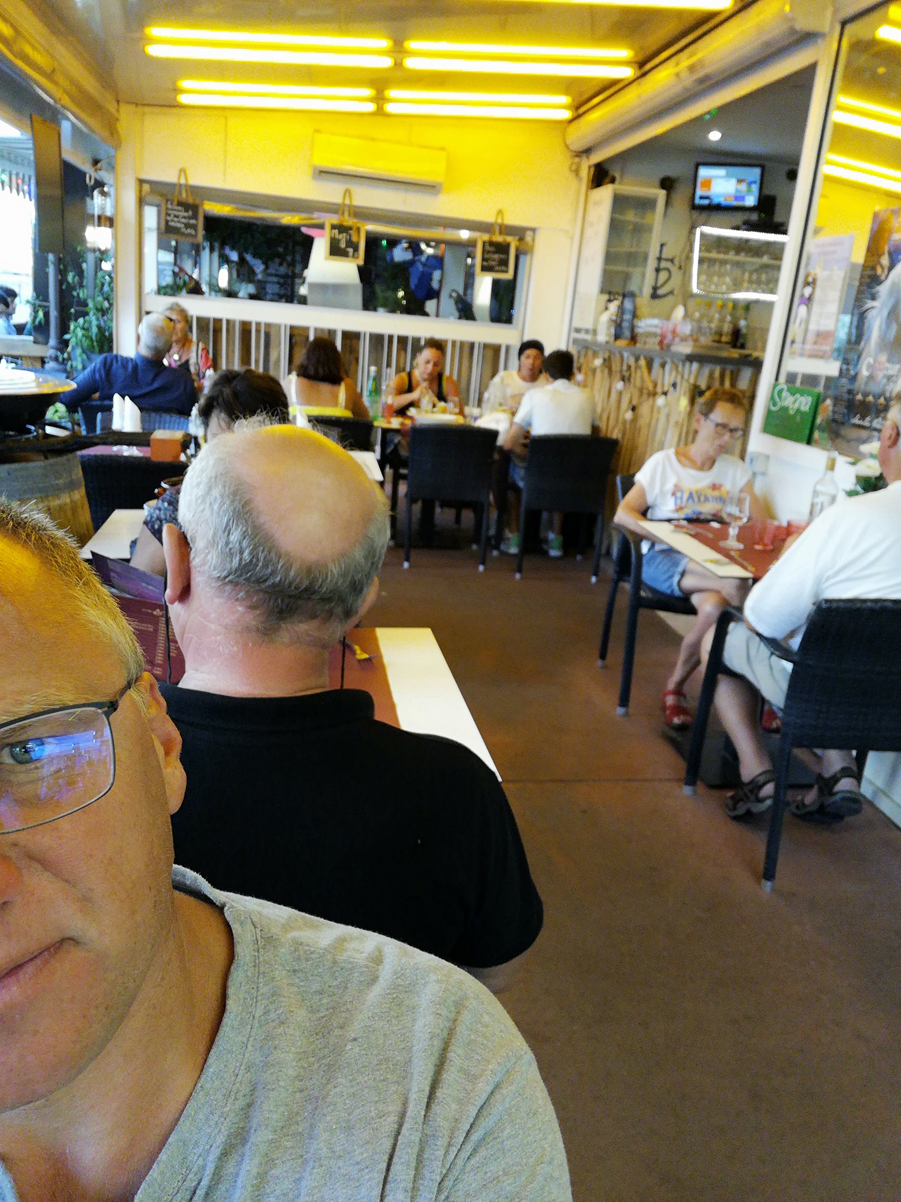En fait, nous n'avons pas dîné. Nous avons mangé un pastis et écouté de la musique. Ambiance gitane... Magnifique danseuse et chanteuse de flamenco !!!!!! Magnifique groupe musical. Ambiance inoubliable.