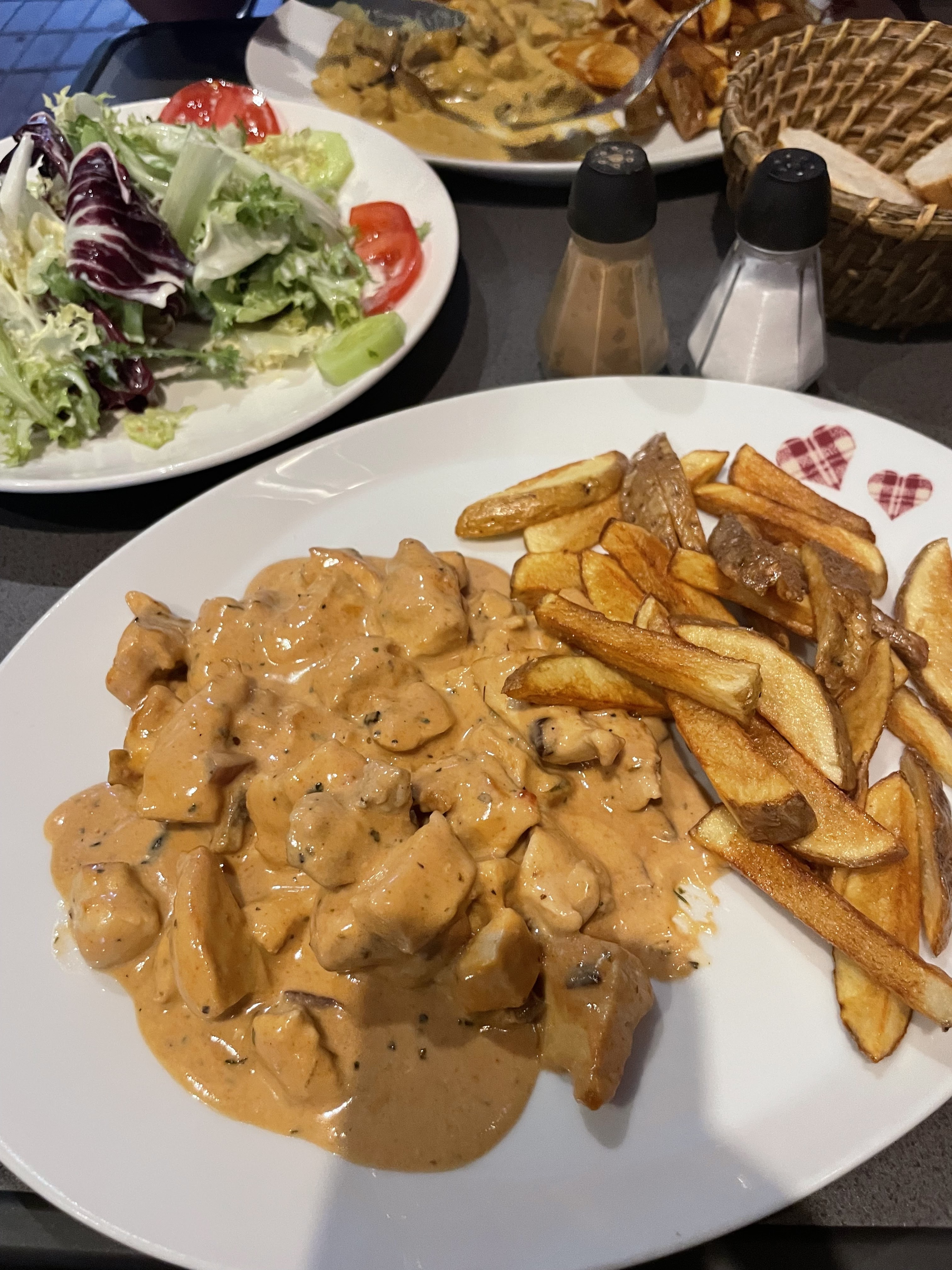 Bon repas, les escalopes de poulet au champignon et le curry avec les frites maison sont exquise. Le personnel sympa, très présent. Juste dommage que les plats et dessert énoncés sur la carte ne soit pas disponible, choix restreint.