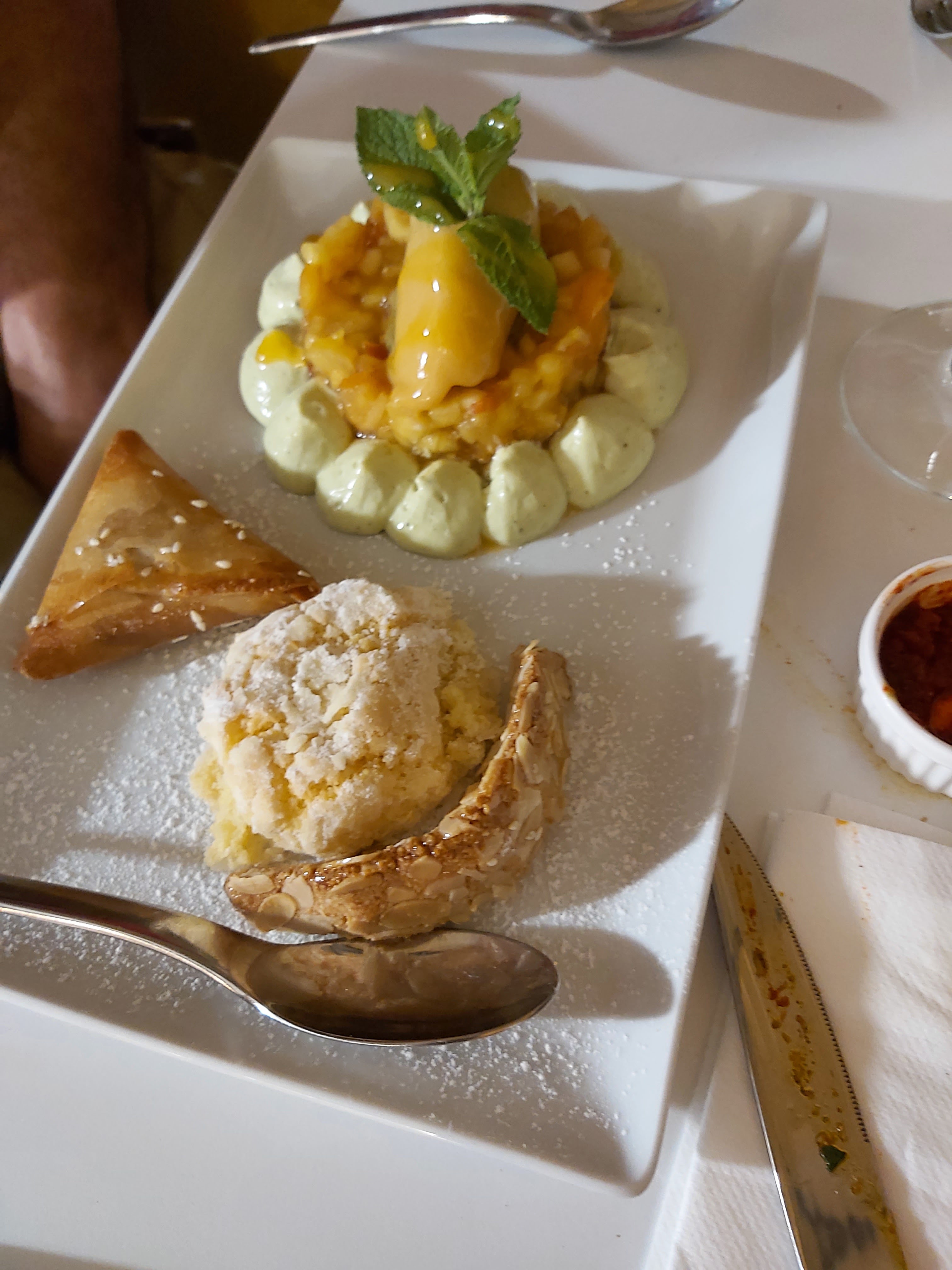 Nous avons passé un agréable dîner, Près du port et à l’écart des autres restaurants. 👍 Nous avons voyagé grâce aux plats orientaux proposés et qui était excellent, petite touche finale le thé servi… Ah je n’en dit pas plus surprise👍 servi avec leur très bonne pâtisserie marocaine faite maison. Service impeccable et personnel très agréable avec un patron très sympathique. La preuve nous avons réservé pour le lendemain. Je recommande fortement 😉.