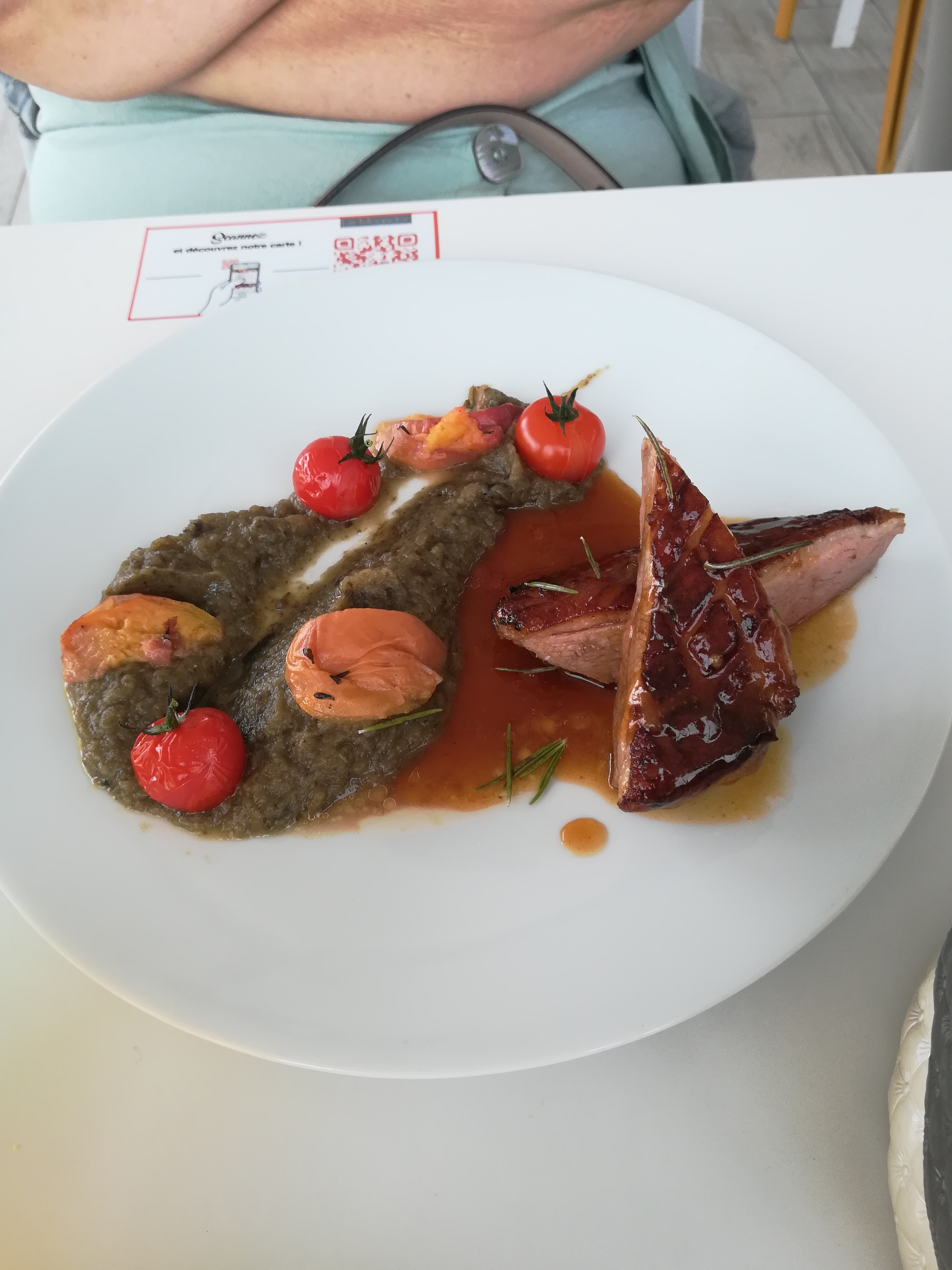 Super cadre, repas en famille Serveur très attentif, agréable. Le seul petit bémol trop attente entre l'entrée et le plat .mais bon nous sommes en vacances ou week-end, donc pas de soucis Menu enfant un peu long, mais de l'entrée au dessert, Super bon. La tartelette petit pois bacon, en entrée, super frais, super bon et léger. La cuisse de canard confite au thym et miel avec courgettes, j'ai adoré. Tout de qualité et frais.le café gourmand un peu déçu. Voilà pourquoi 4 étoiles et non 5.