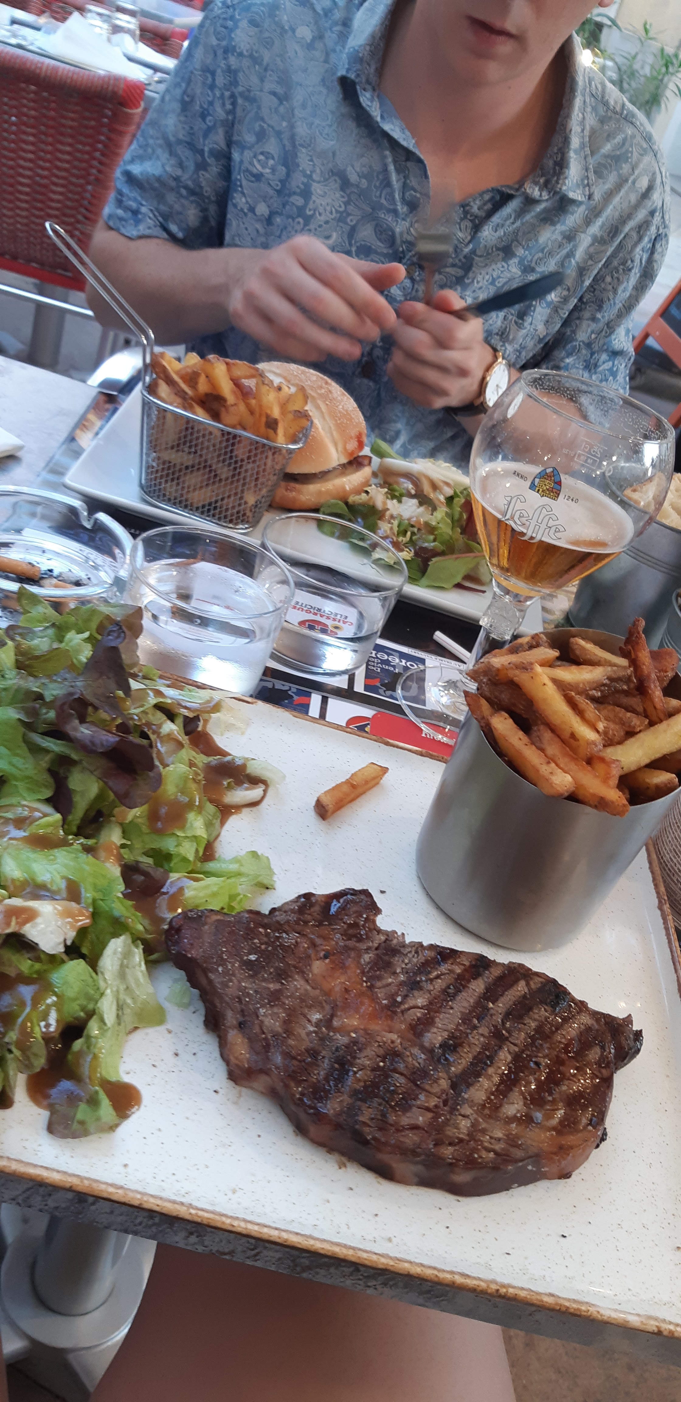 Lendemain de féria....je n'ai pas envie d'y retourner ... plateau de boissons renversé par la serveuse....les salades pour mes invités correctes....sans plus et mon plat ...bavettes d'aloyau très très dure et froide ainsi que les frites....de la veille et réchauffées....à éviter 😭