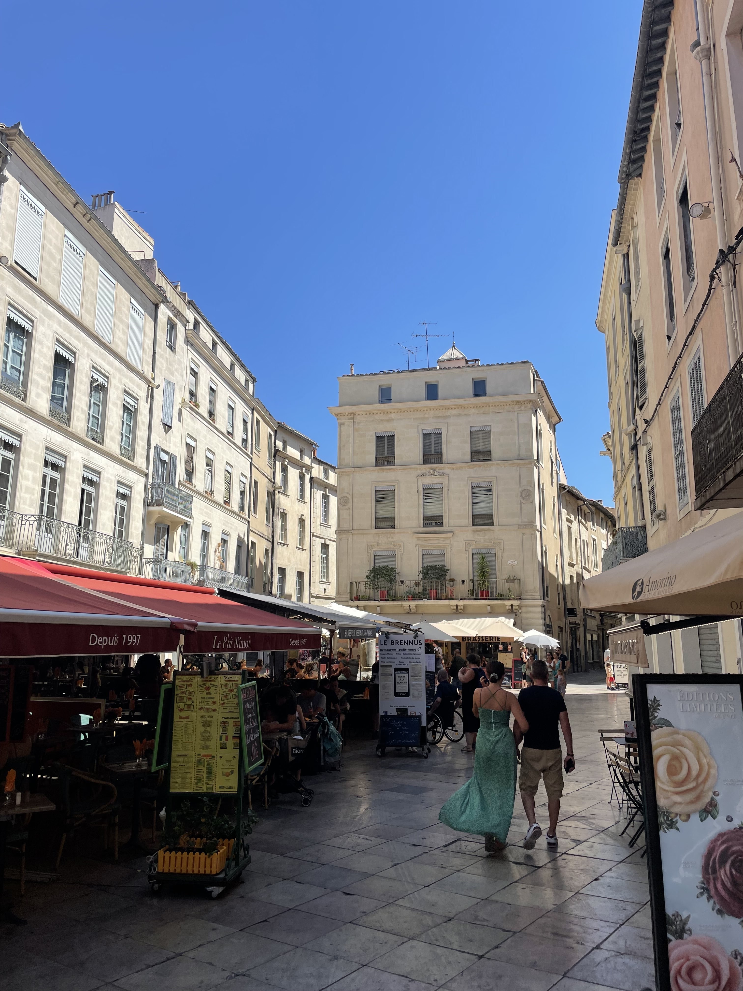 La première terrasse de notre séjour à Nîmes nous a enchantés. L'ambiance y était agréable, un musicien jouait des classiques français à l'accordéon. La nourriture était de qualité et le service excellent. C'est un bel endroit pour prendre l'apéro et/ou déjeuner.