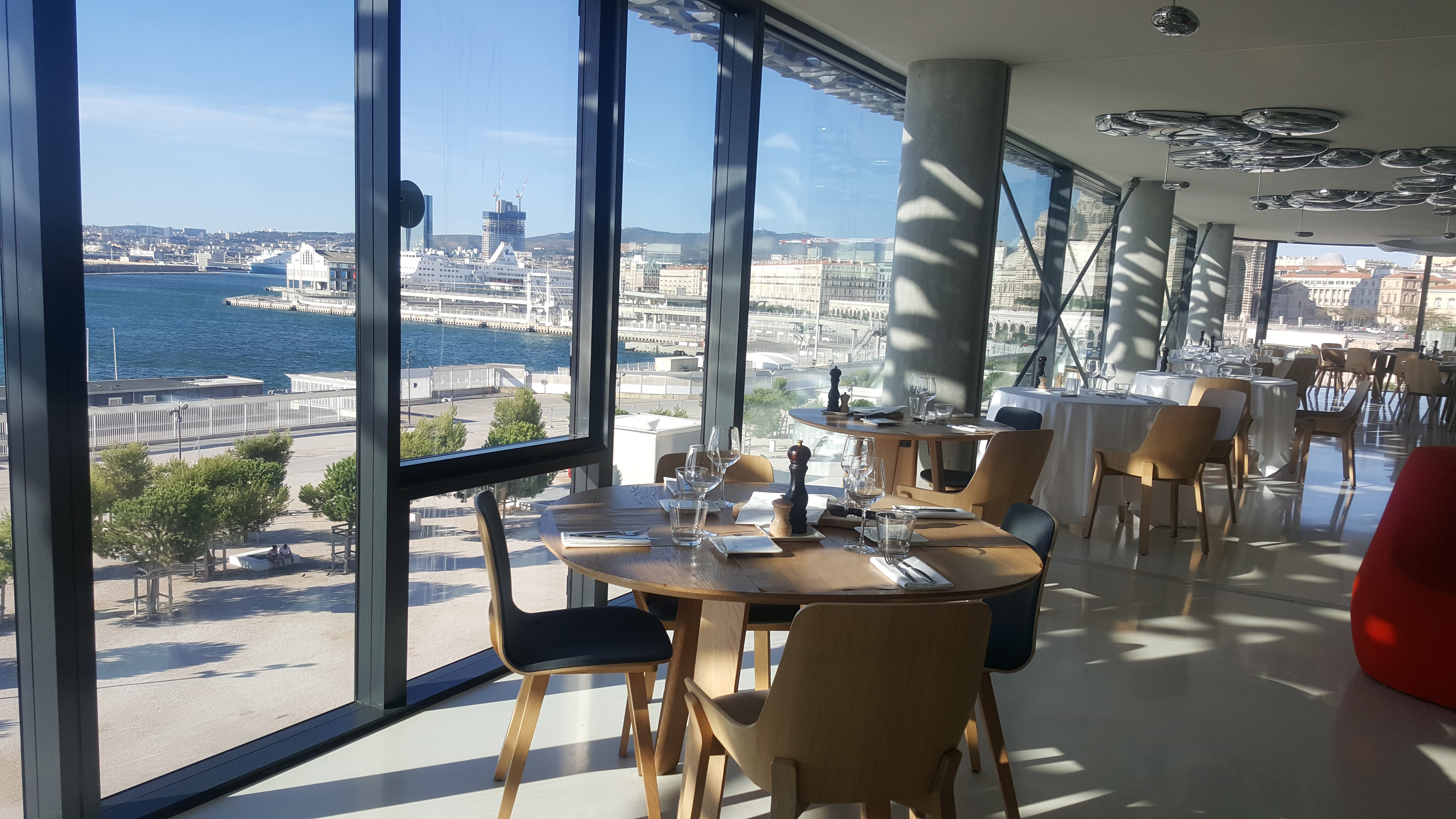 Le restaurant se trouve au dernier étage du Mucem. On a une vue panoramique sur la mer. C’est magnifique. Les plats sont bons et le personnel serviable et professionnel. C’est un endroit qui vaut le détour :)