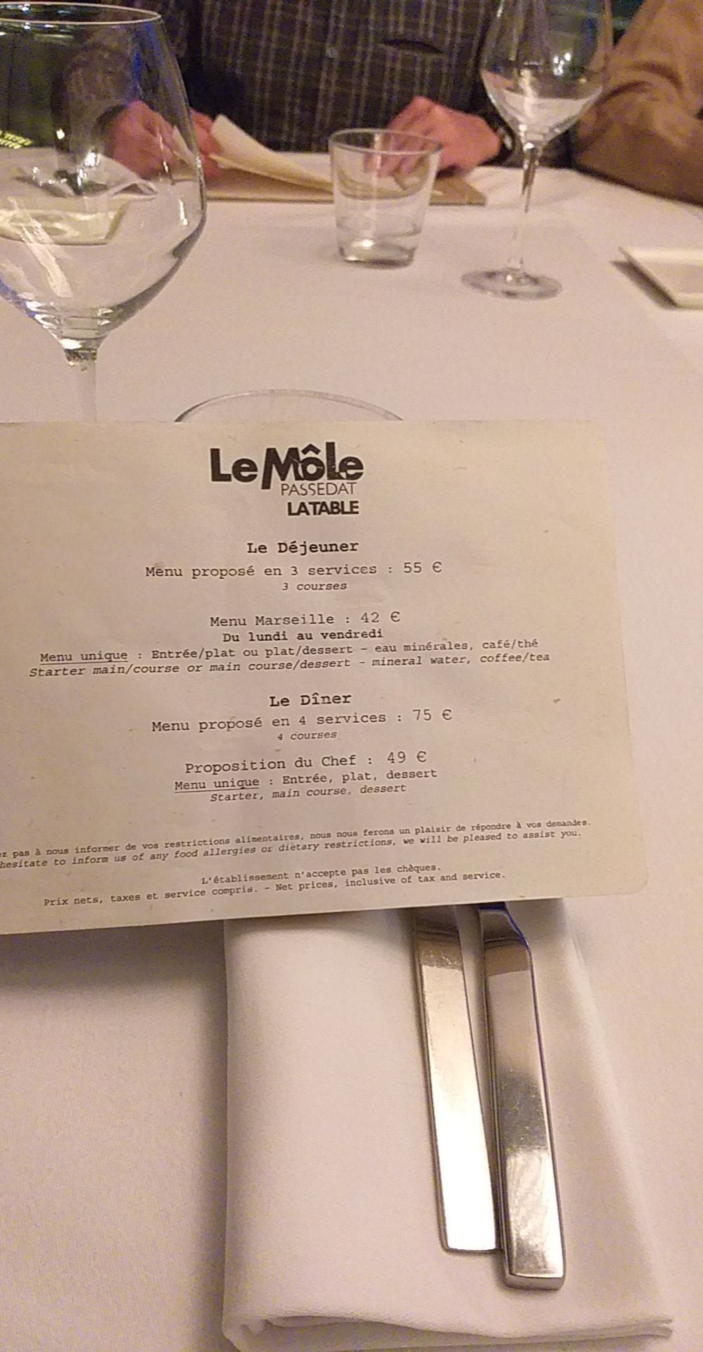 Nous avons passez une excellente soirée, le repas était sublime de l'amuse bouche jusqu'au dessert, le service très sérieux et pro. Le chef très talentueux et professionnels ainsi que le directeur du Mole. Merci pour cette magnifique soirée dans votre établissement. A recommandé sans hésitation.