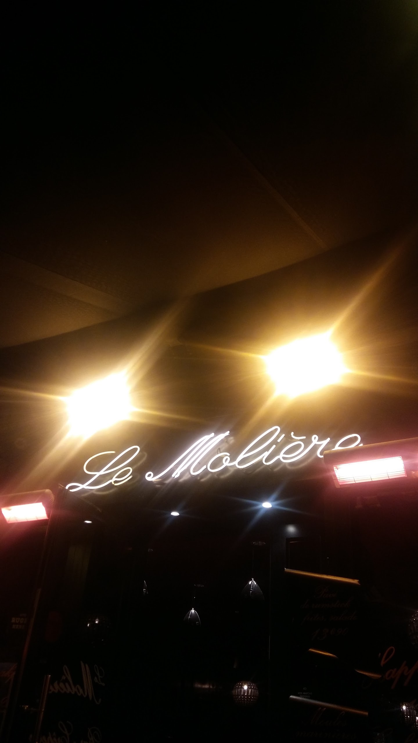 Bonsoir, nous sortons du Molière avec un avis tres négatif du Molière. Odeur de cigarettes.....Nous conseillons au cuisinier de prendre des cours de cuisine ou de changer de métier afin qu il découvre la vrai blanquette de veau française et pas une blanquette de veau façon boeuf bourguignon photos à l appui si le patron nous le demande. .par contre excellent choix de bières.