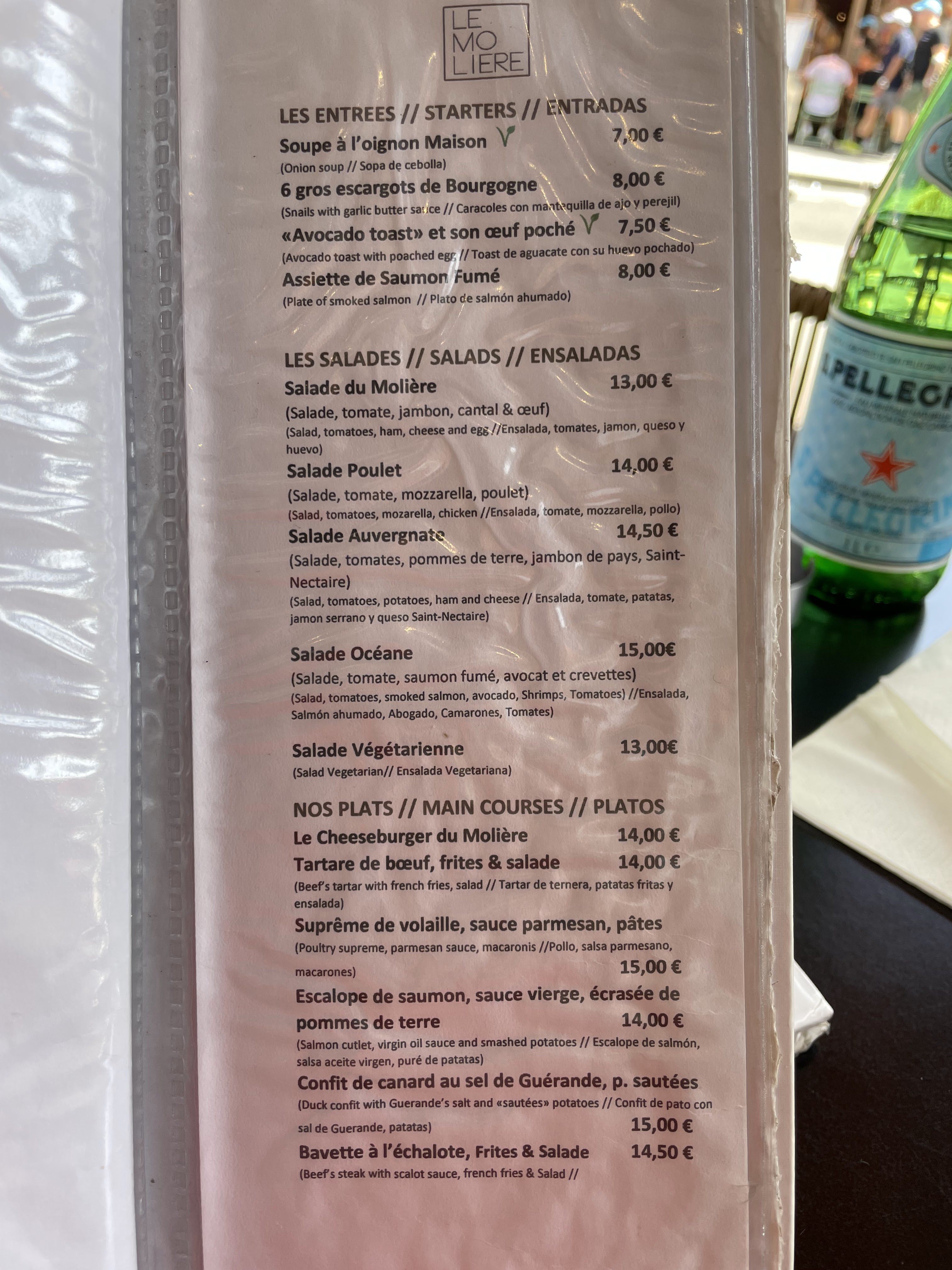 Molière n’a que le nom. Attendre plus de 20 minutes pour une bière bouteille, qui n’est même pas servie en verre, ni décapsulée par le « serveur ». Commander une planche et devoir l’annuler une minute après, suite à un imprévu, ceci est impossible car je cite « le manager n’est pas là ». Obliger donc de régler une planche que l’on ne mangera pas, sans excuse et juste une impolitesse totale de la part de l’equipe présente. Bref, l’attrape touriste par excellence.