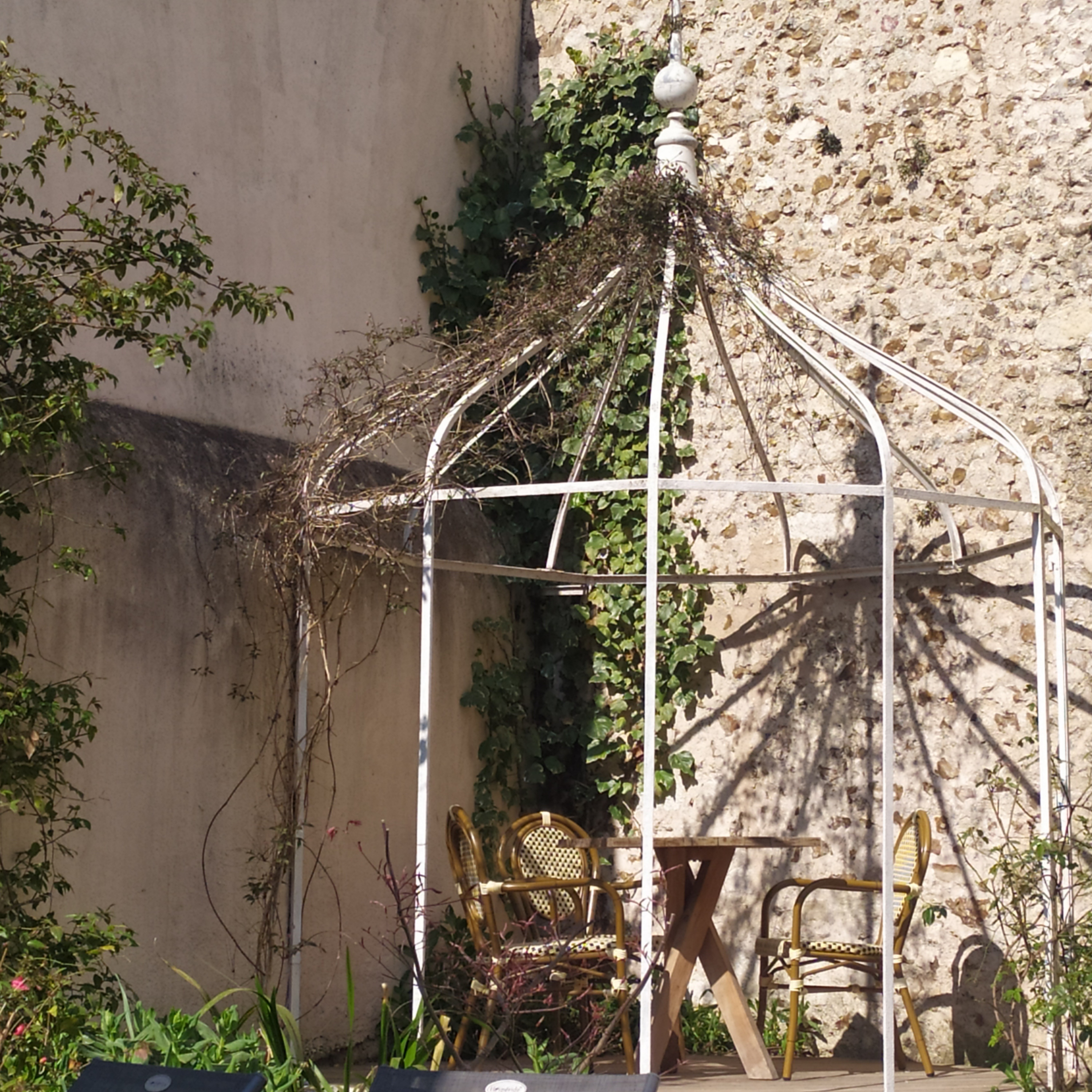 un cadre bucolique avec sa jolie cour aménagée pour un petit déjeuner copieux au calme ou un brunch entre amis.
