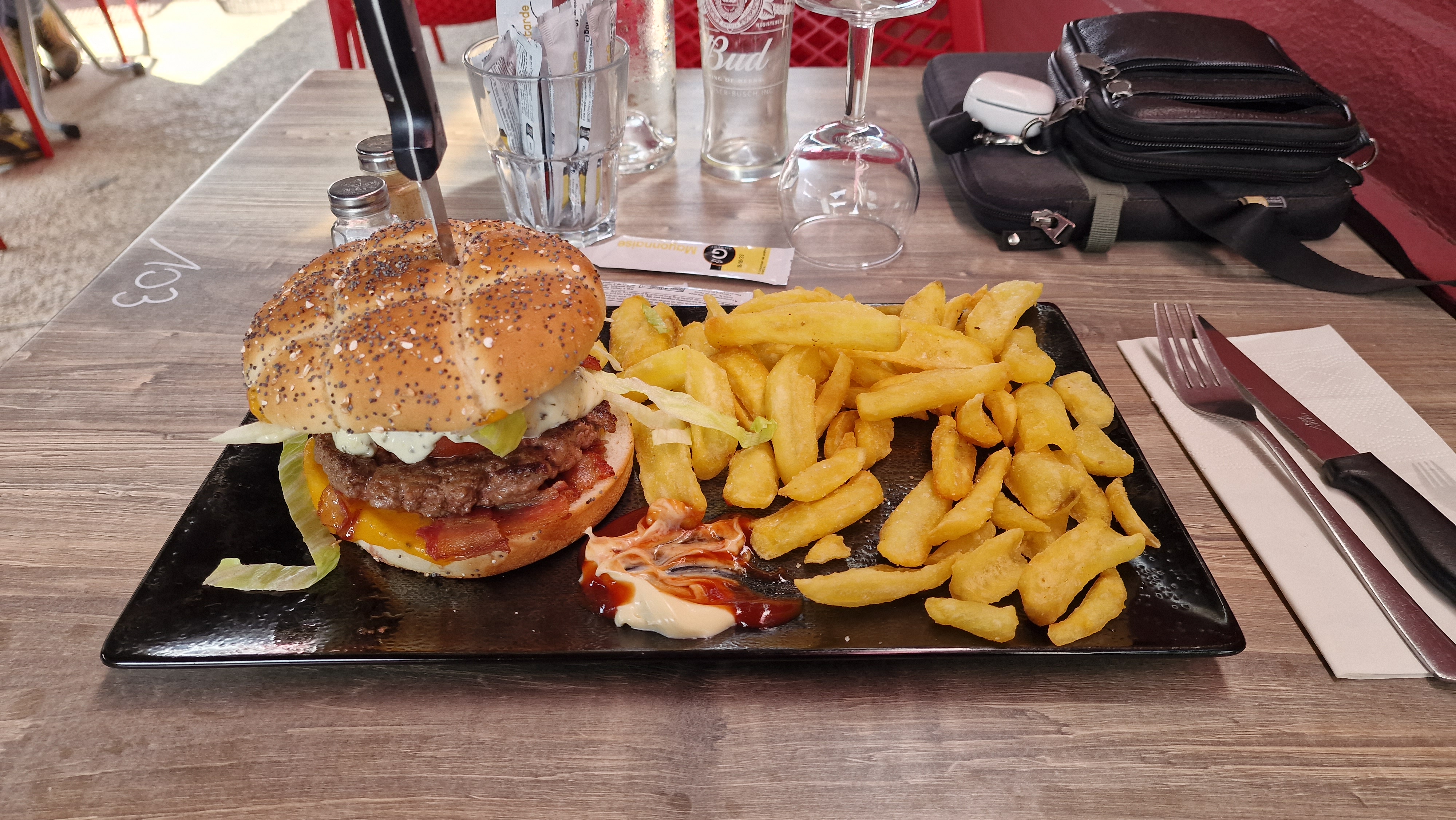 Un restaurant un peut gastronomique mais pas trop juste ce qu'il faut, la terrasse est agréable, malheureusement dérangé par les camions qui passant en journée. A côté le service et le professionnalisme est au rendez-vous, les plats son intéressant à prix abordable, le service est rapide et au petit soin pour le bien être de ces clients merci à vous . J'adore la petite 125 et le casque sur le mur. Un restaurant à recommander chaudement pour ceux qui cherchent la simplicité.
