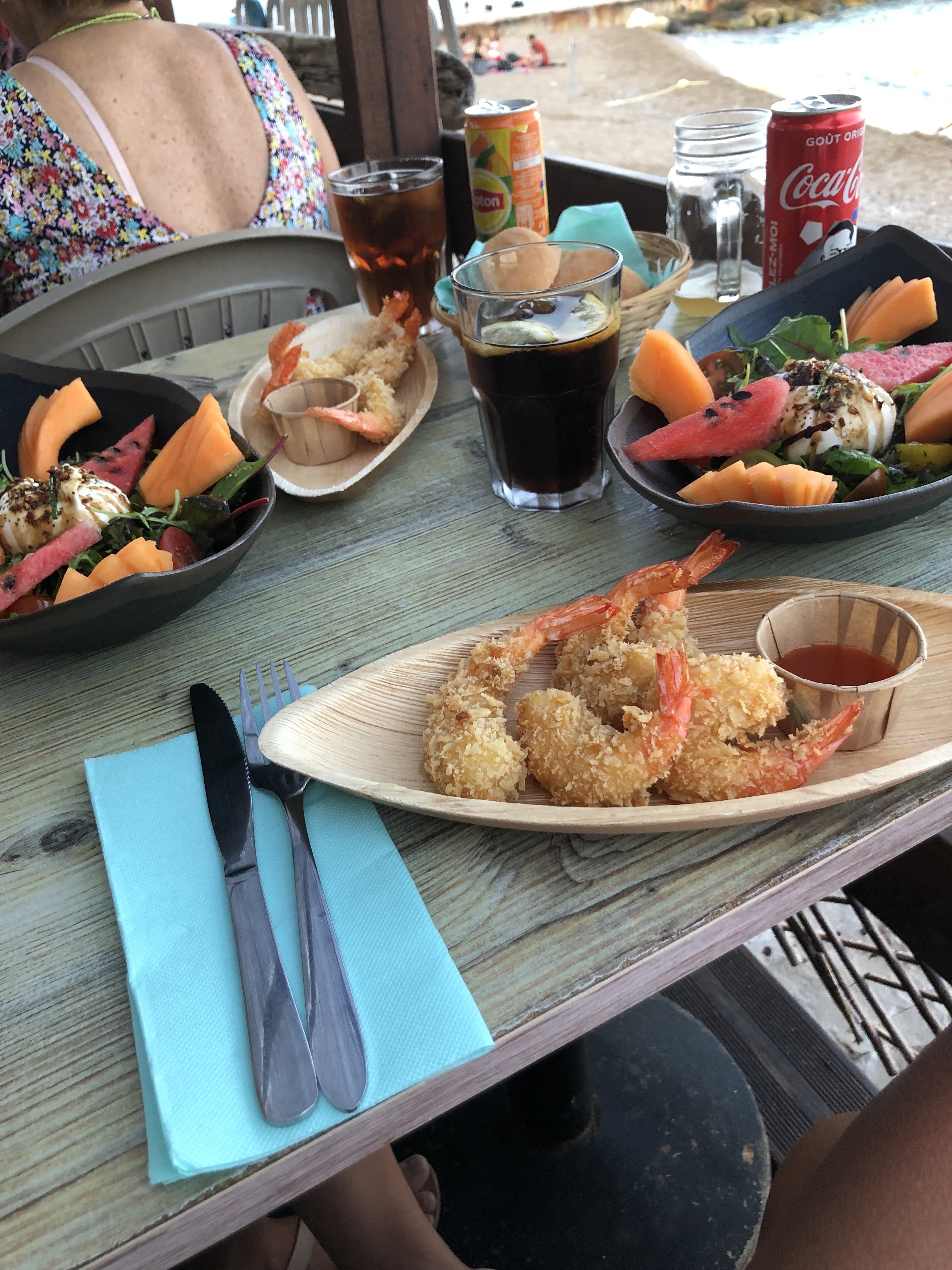 Lieu magique, les pieds dans le sable et les yeux plongés dans cette vue sur mer, et l'estomac en apothéose 🤩 . C'était vraiment très bon et beau. Au menu du soir des tapas, planches de charcuterie et fromages vraiment top, accras de morue bien épicés et parfumés et tempura de crevettes très croustillantes et pour finir on a pris le camembert fondu ! Top du début à fin.