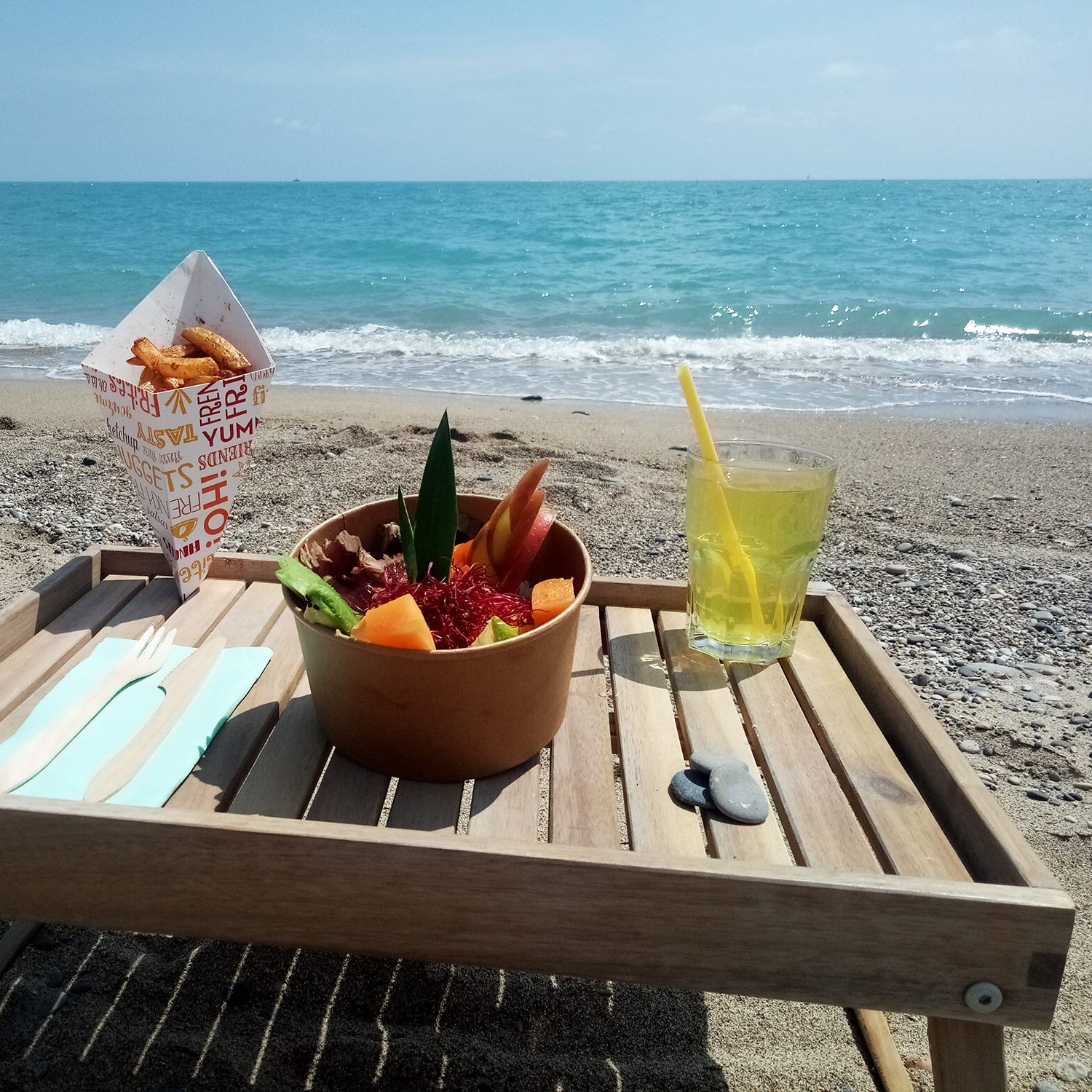 La tendance du moment au restaurant Le Mombasa, c'est le plateau repas sur la plage 😎 La recette est simple, on commande une ou plusieurs suggestions à l'ardoise suivant ses envies ( salade, Poke Bowl, viande, tartare, burger bistronomique, panini géant, accompagné de délicieuses frites maison 🍿 ), puis on s'installe tranquille face à la Grande Bleue pour déguster son repas. Elle est pas belle la vie !!!