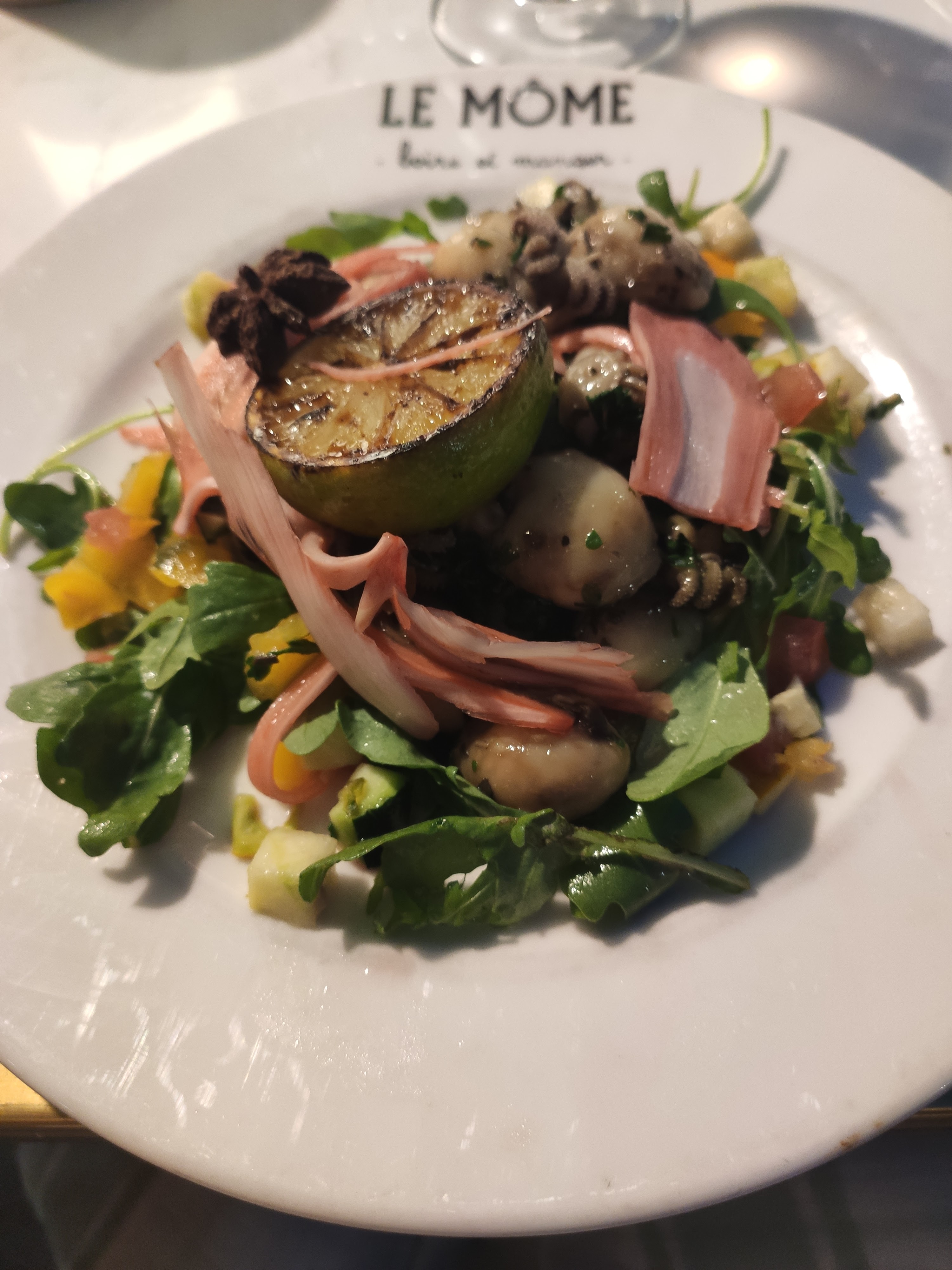 Excellent dîner chez Le Môme avec des plats originaux, généreux et bien présentés. Le cocktail à base de gin fut aussi délicieux et le service souriant. What else ? Une déco chaleureuse.