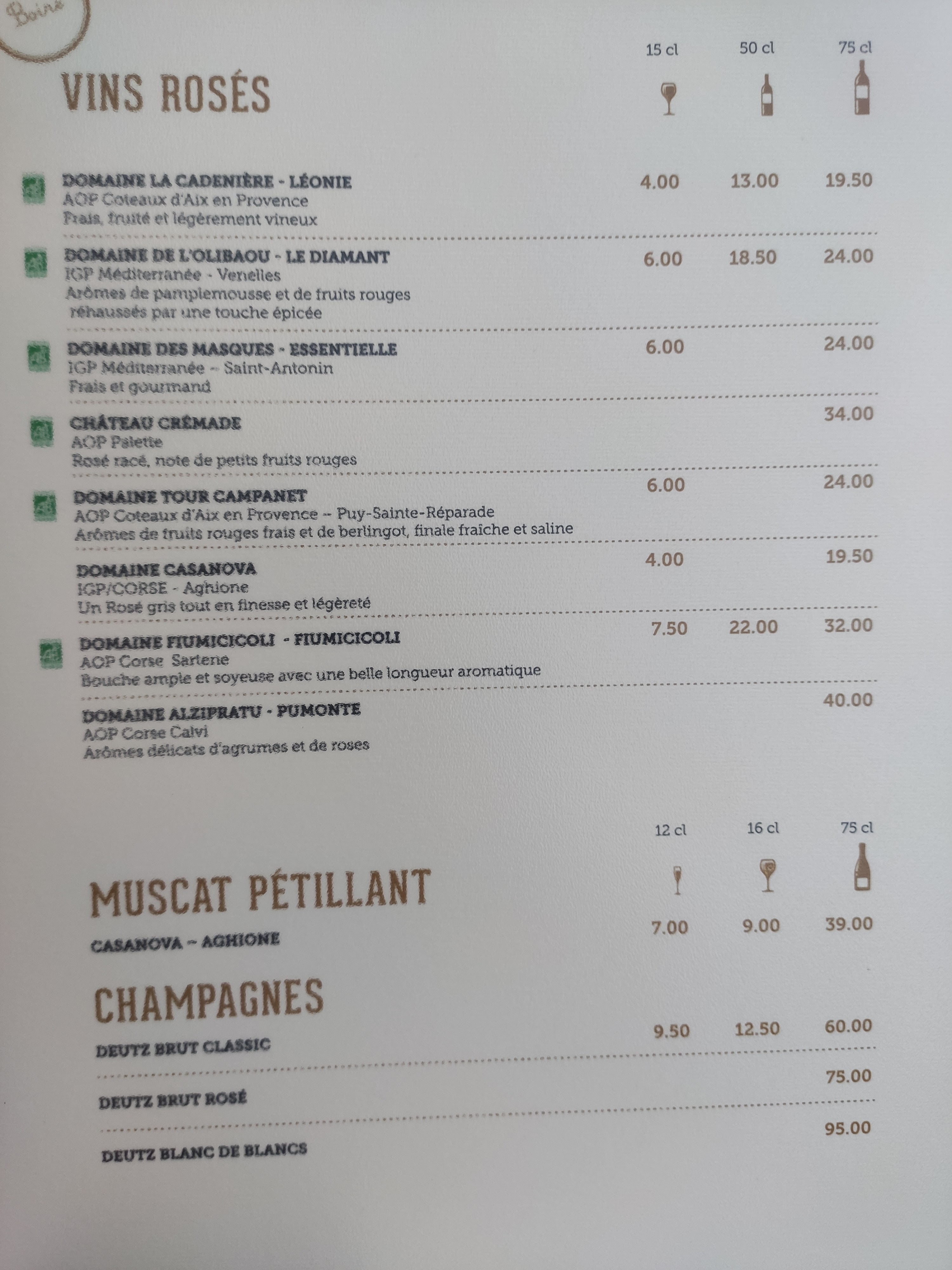 Cuisine excellente et originale, service sympathique et efficace, juste un niveau sonore des conversations très élevé en salle à l'heure de pointe de mi-journée (vers 13H00). Je n e retrouve pas dans la liste des plats appréciés et à recommander nos tagliatas de boeuf et les tentacules de poulpe, la petite assiette de fromage corse avec un verre de Sartène rouge, etc.... Pour un enfant de 9 ans, l'hamburger très bien garni est royal avec ses frites