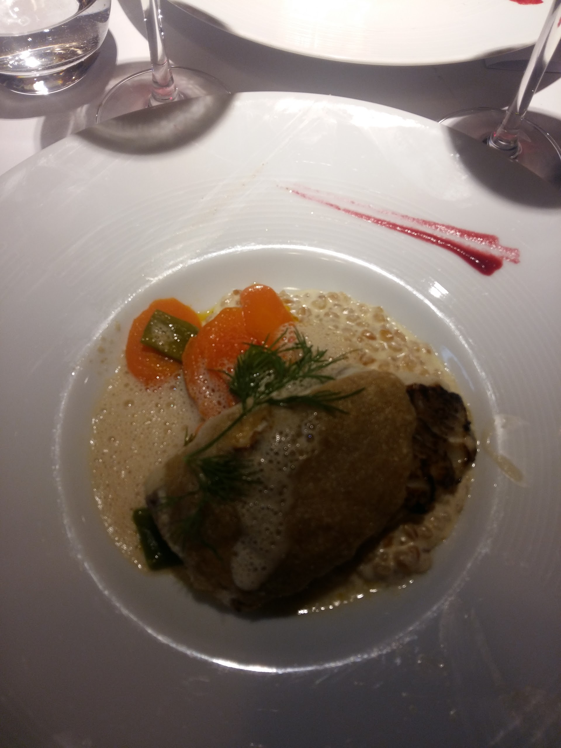 Il fait vraiment froid dans la salle, porc pas cuit, des carottes légèrement en sous-cuisson, goût chimique dans la sauce , patates douces en deux façons :j'attends toujours la deuxième façon... dessert fad . Le vin était excellent.