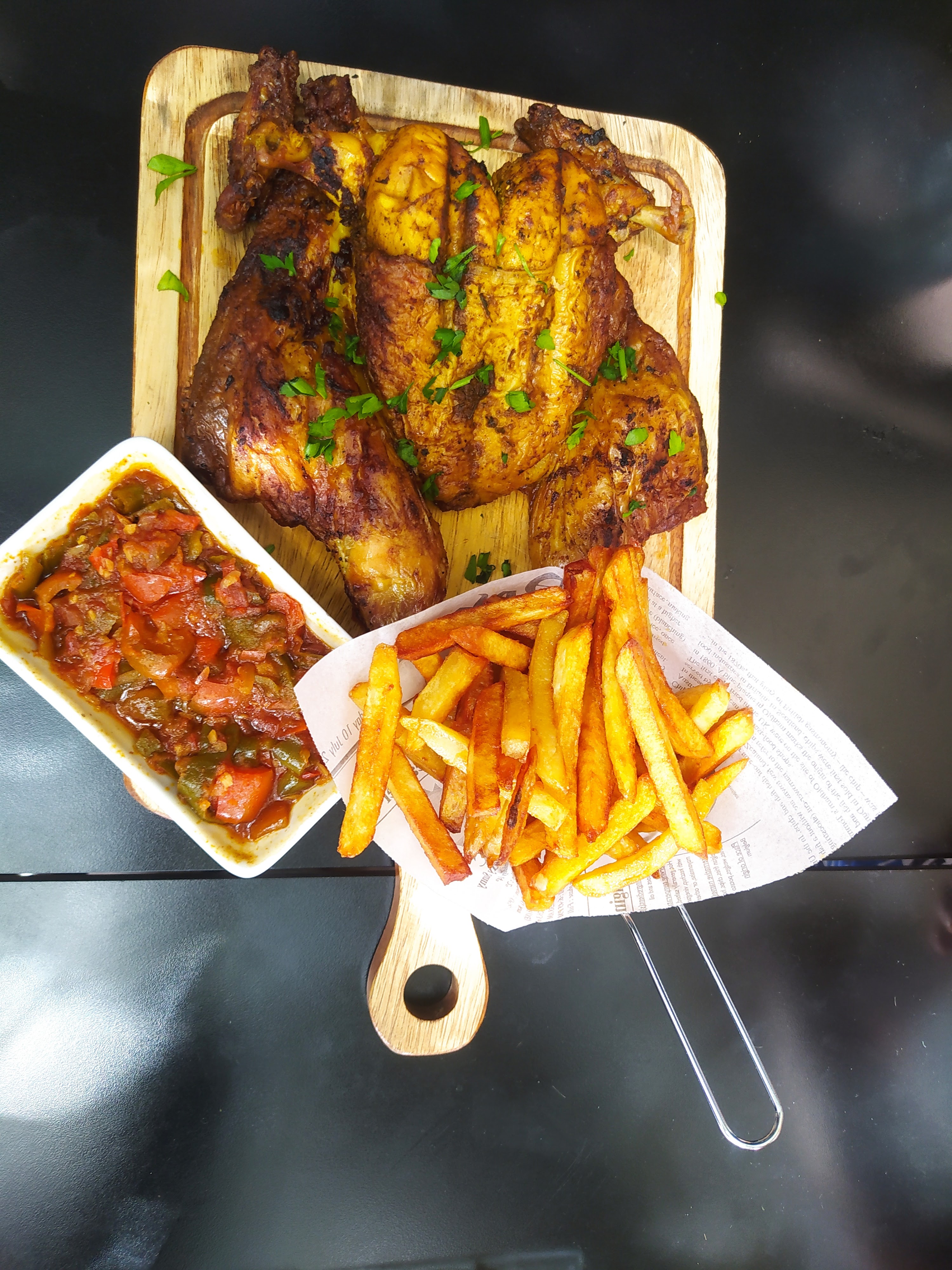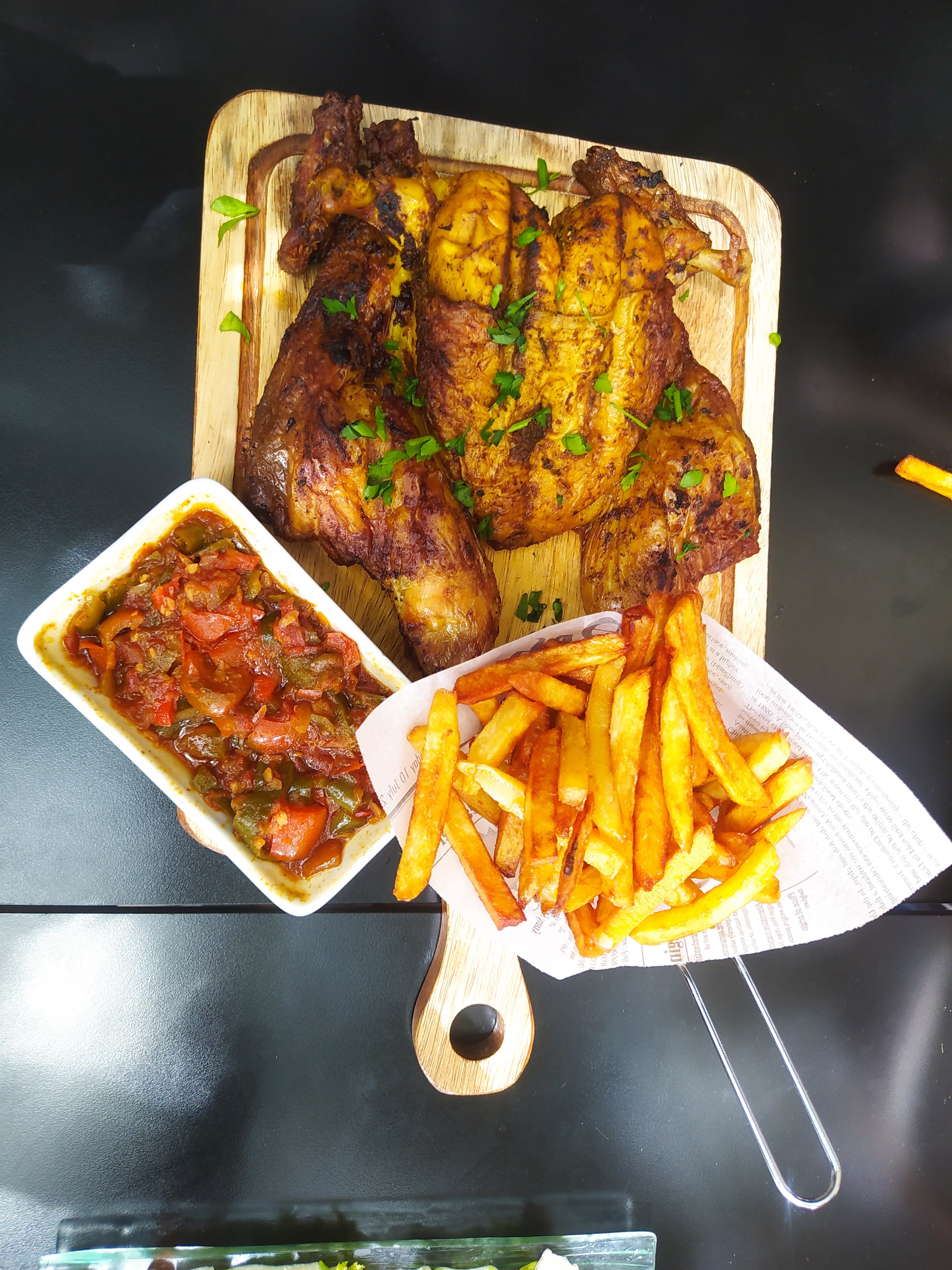 Bon Restaurant, poulet braisé bien cuit. Les portions sont correctes. Je recommande ce restaurant.