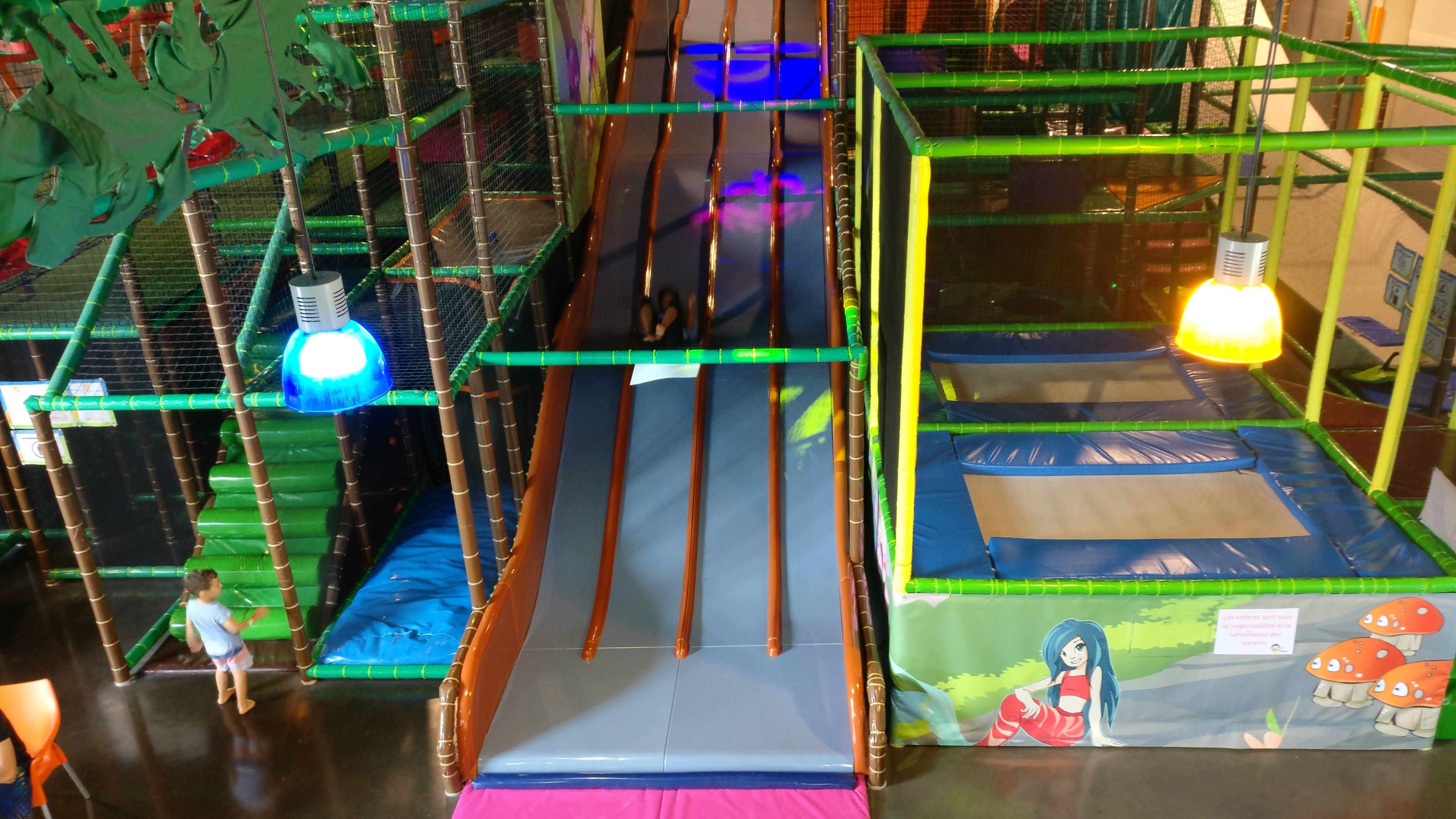 Super endroit pour les enfants je ne parlerai que des moins de 4 ans espace vraiment adapté avec une piscine à boules avec toboggan et un espace trampoline ma fille s est éclaté à refaire en été avec les jeux gonflables et les toboggan à eau