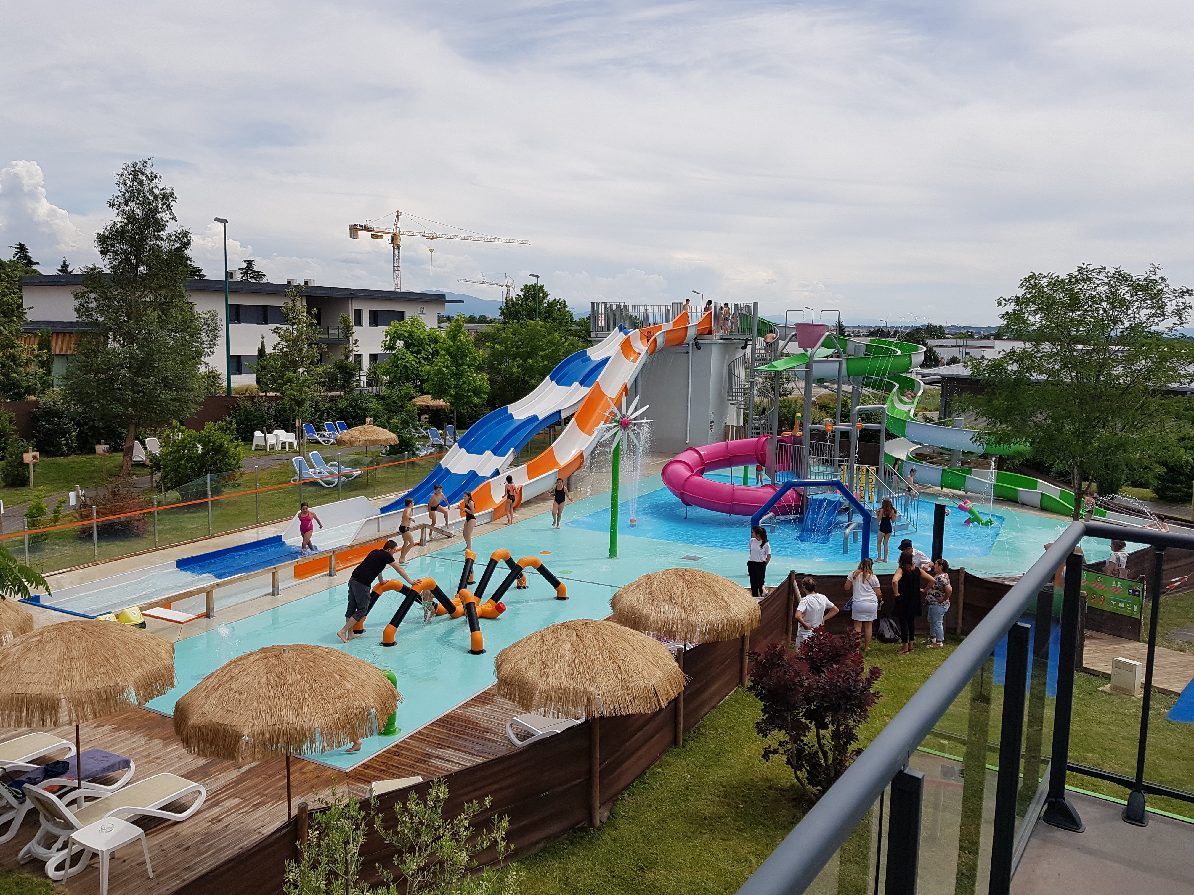 Super ! Pour les enfants toboggans et espace pour les plus petits . Un petit bar . Extérieur payant , demander bien sur quel espace vous voulez rester car sinon soucis enfin si vous restez au bar même si vous n'allait pas toucher l'eau faut payer l'option en plus de vos consommations. Bref, c'est quand même sympa un peu cher . Y a un restaurant au premier étage pour le soir . Personnelles accueillant .