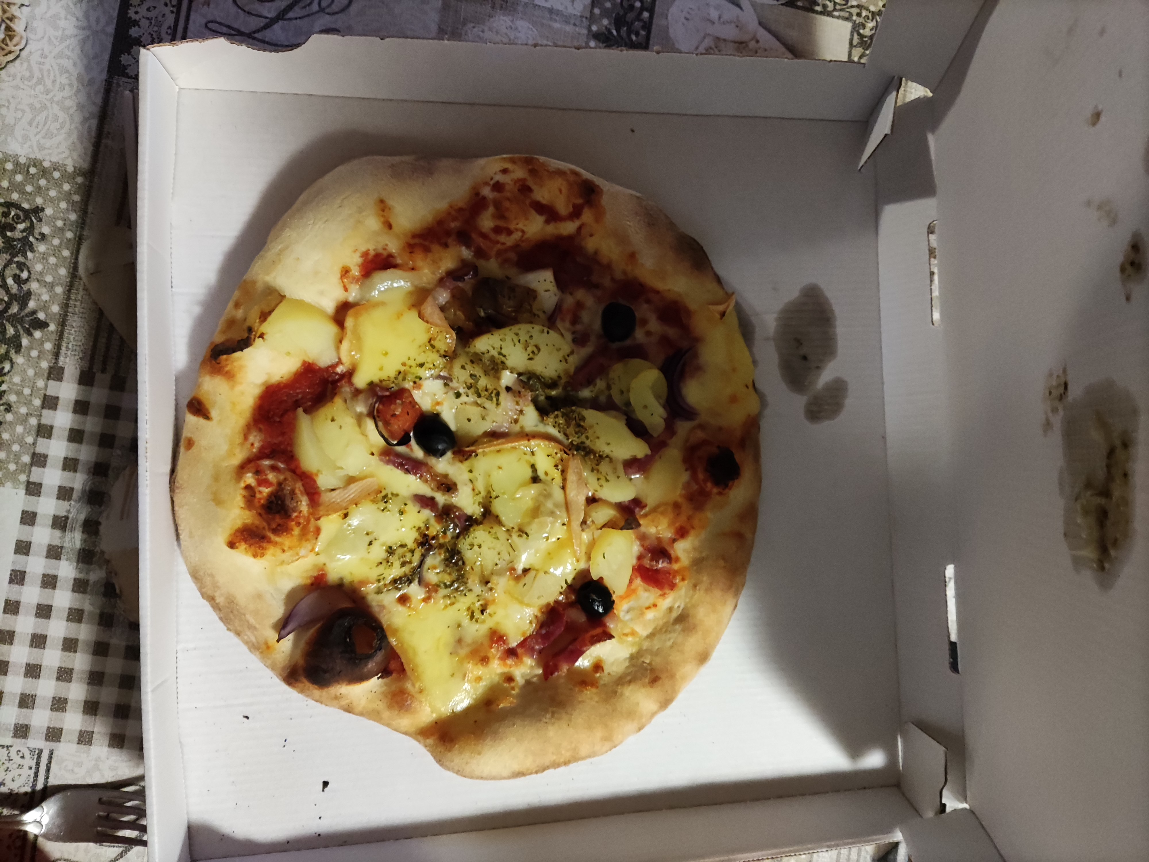 Bien petites pizzas au regard de la boîte... Nous en avons commandé 3 à emporter, c'est bon et ponctuel mais bien petit. Nous sommes du Poitou, et pour le même prix, la pizza dépasse de la boîte...