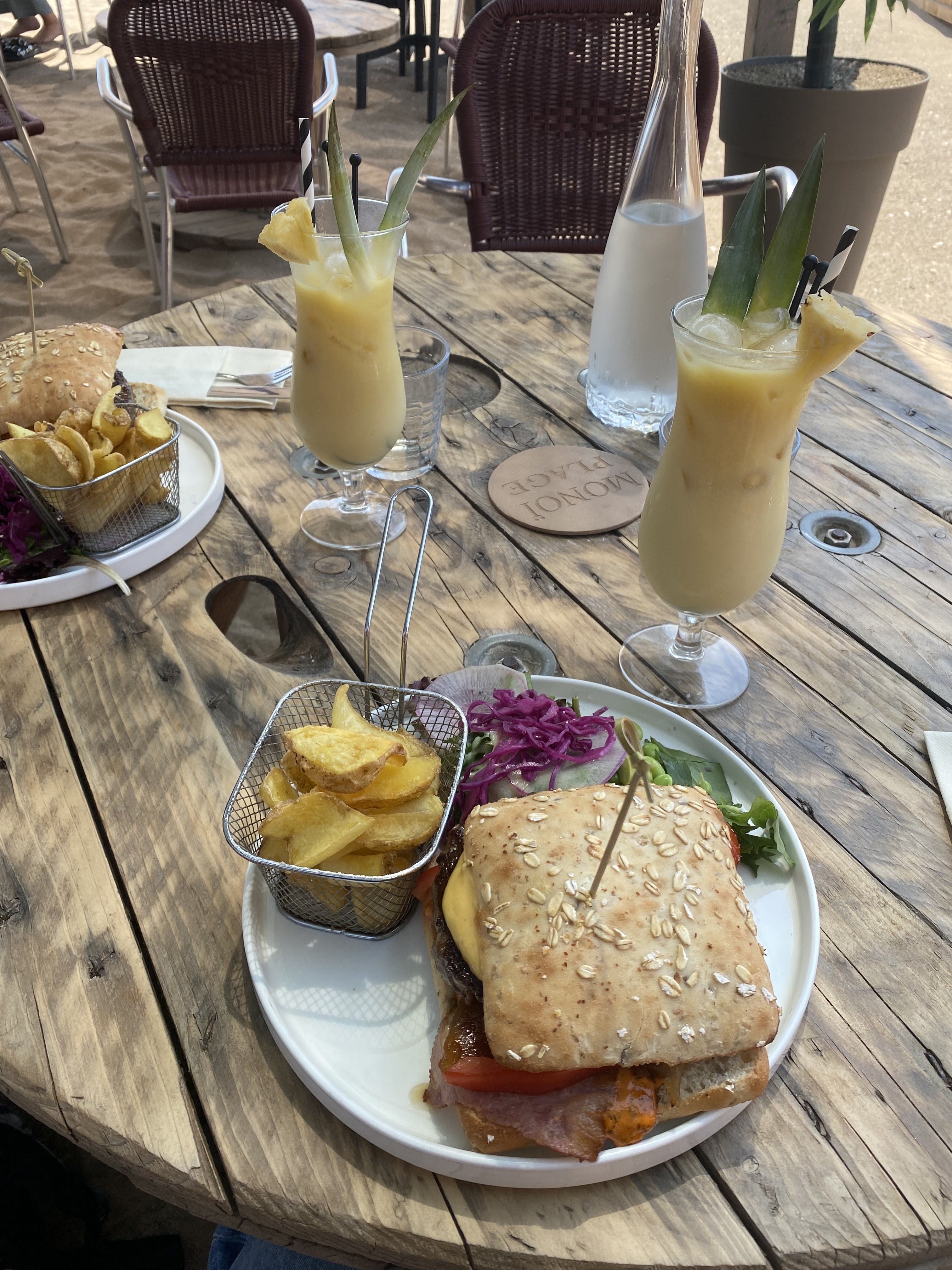 Cadre magnifique, les pieds dans le sable. Le burger et le bagle sont très généreux, nous nous sommes régalés! Le personnel est également très sympathique. Je recommande