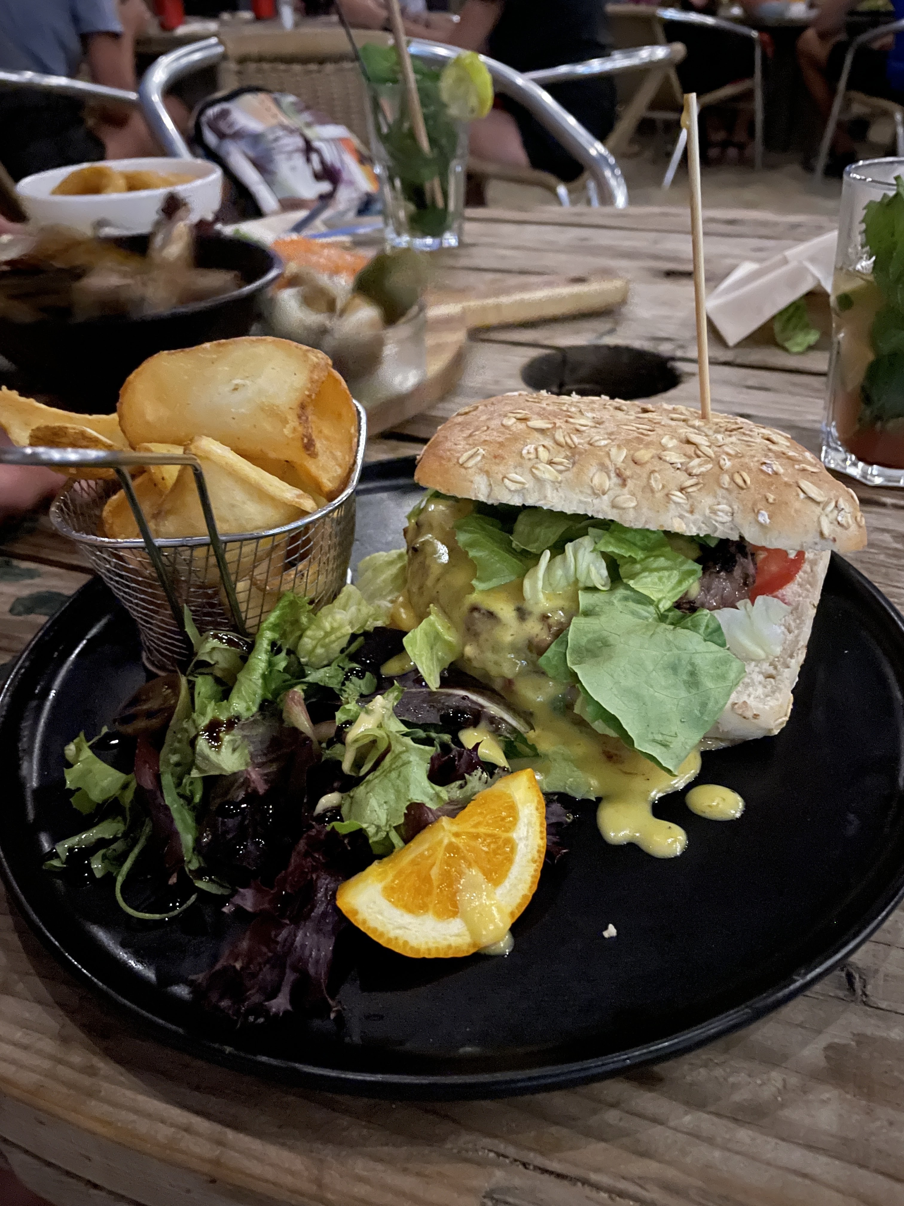 Venu déjà 2 fois, lieu très sympa, tapas et burger très bon. Je recommande 👍👍 Après service un peu long, mais permets de profiter des lieux et c'est les vacances.
