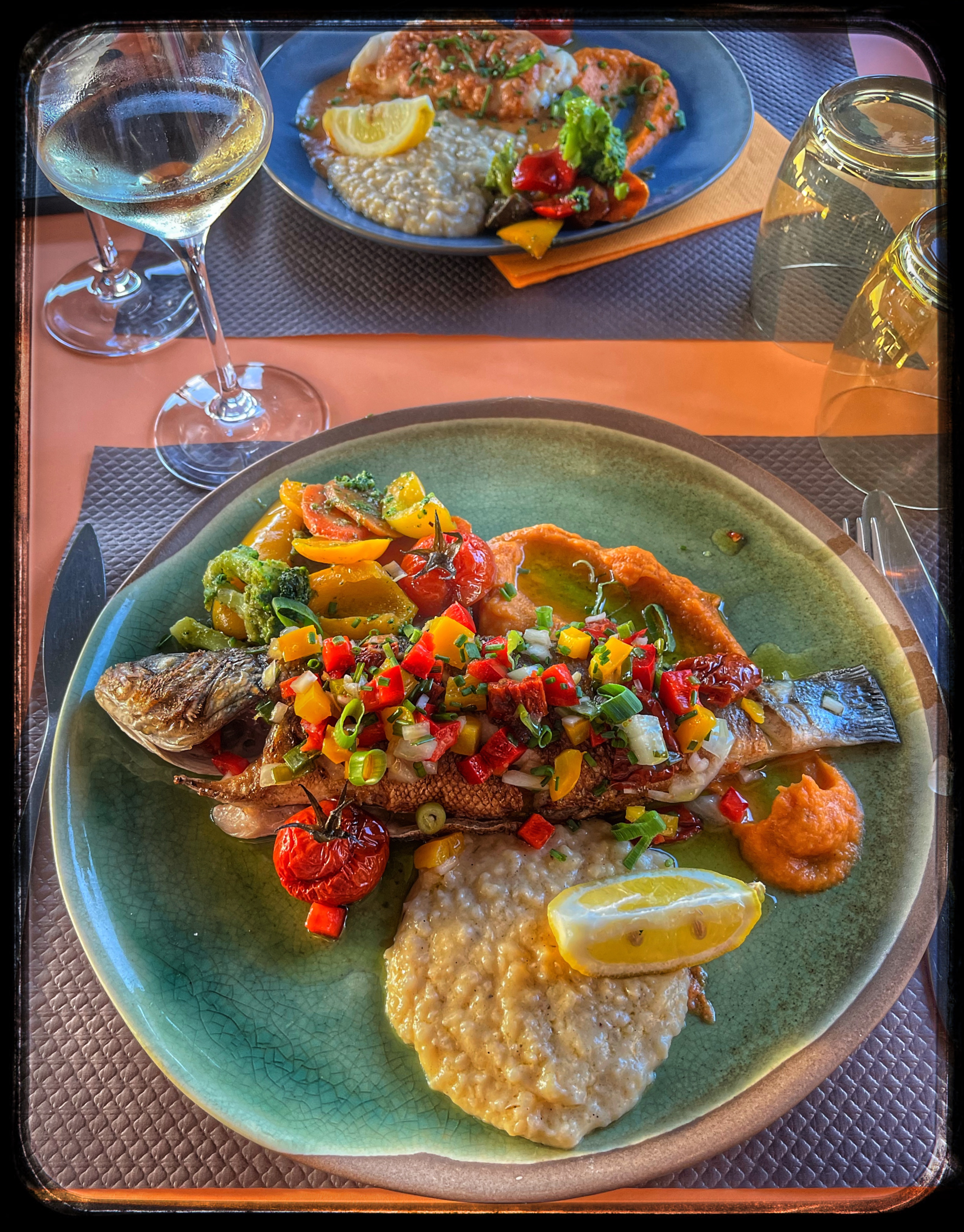 On a été deux fois à ce restaurant en basse saison puis en haute saison. En basse saison rien à dire assiette bien garnie et le goût était (photo 1) par contre en haute saison pas terrible assiette moins remplie ( photo 2 même plat) le goût bof. Le rosé était imbuvable .