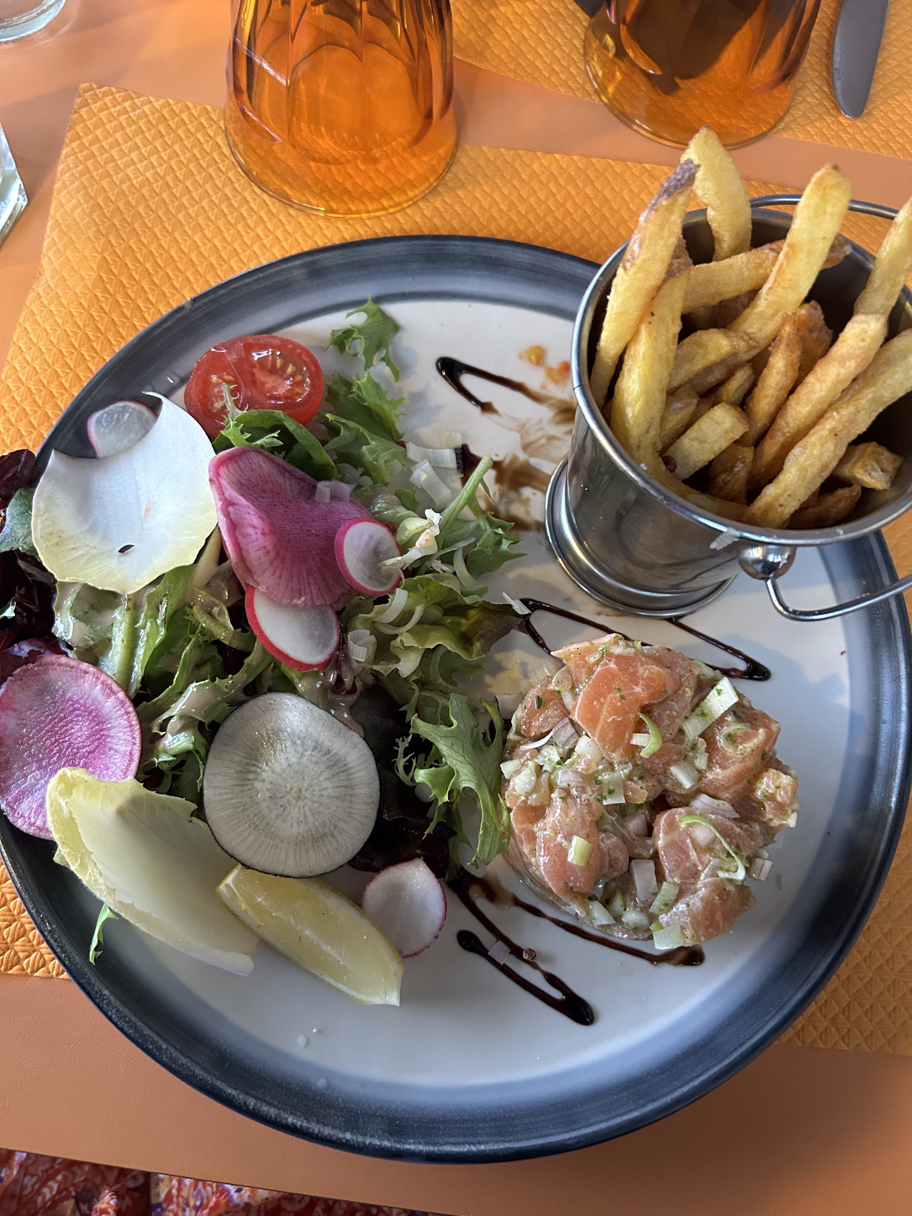 Nous sommes venu le 14 juillet sans avoir réservé. Accueil avec le sourire. Plats délicieux (le tartare de saumon 😋) et assiettes joliment préparées. Allez y !