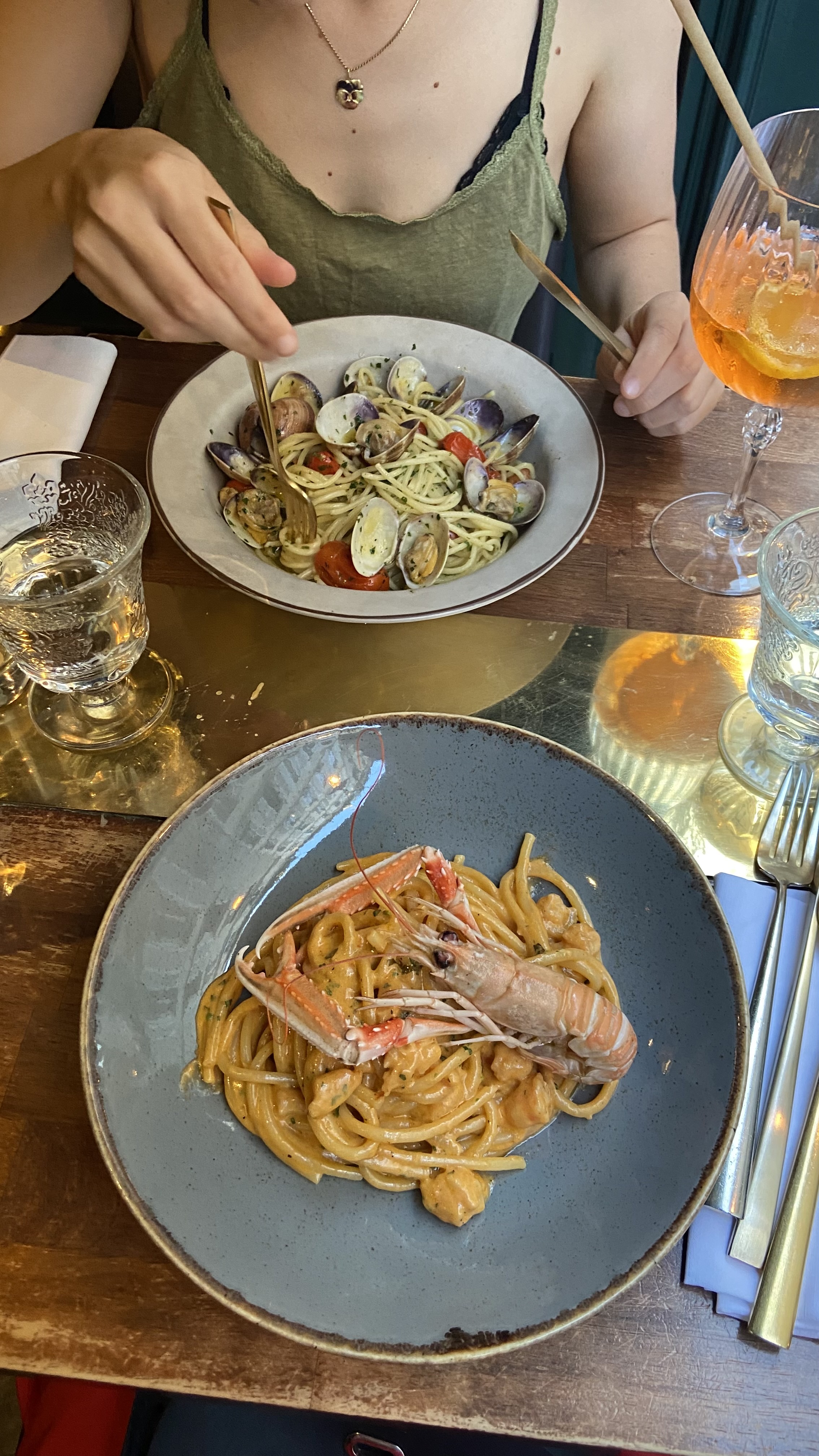 les entrées était bonne mais les spaguetti vongole n'avait pas de goût l'une des plus mauvaise que j'ai manger. Les pâtes aux langoustines était bonne. Donc expérience mitiger.