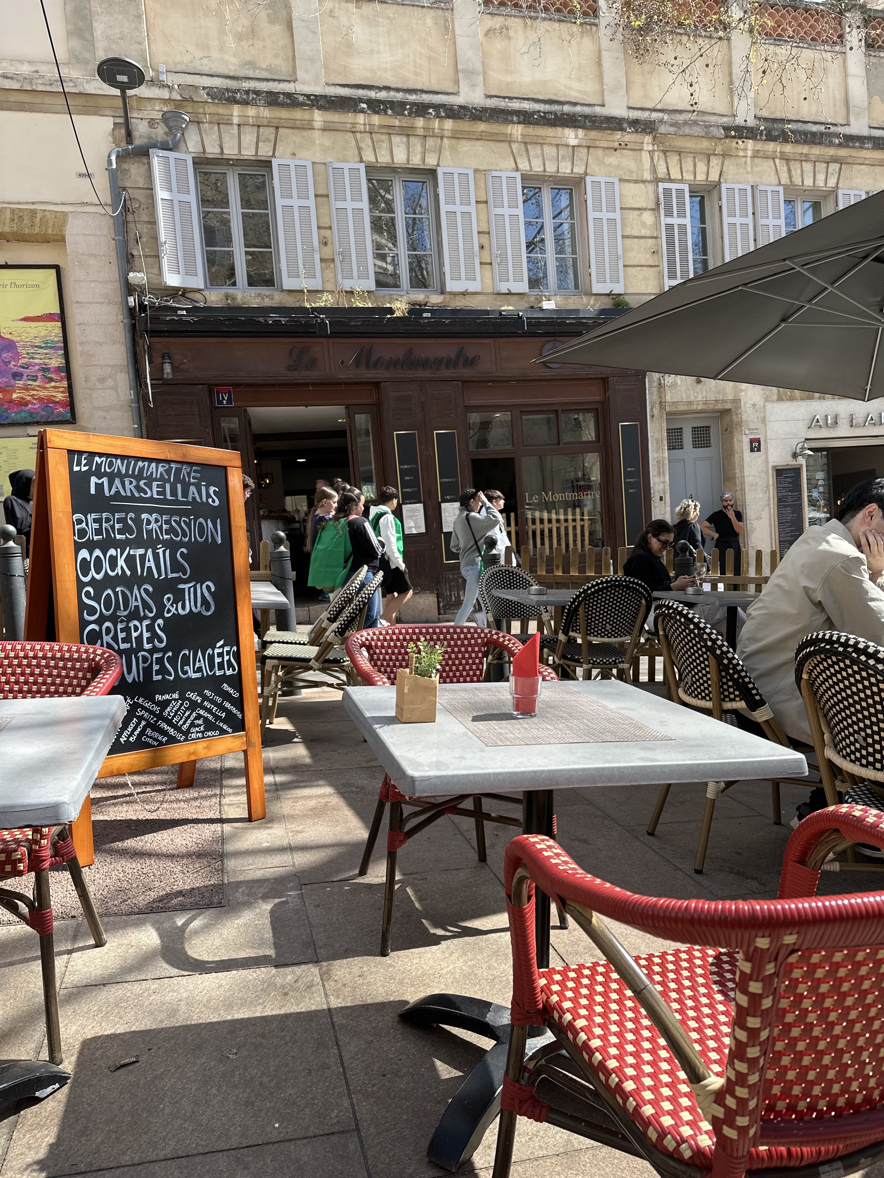 Tres bonne table...agreable terrasse en plein soleil...la salade Marseillaise excellente Burger du chef egalement