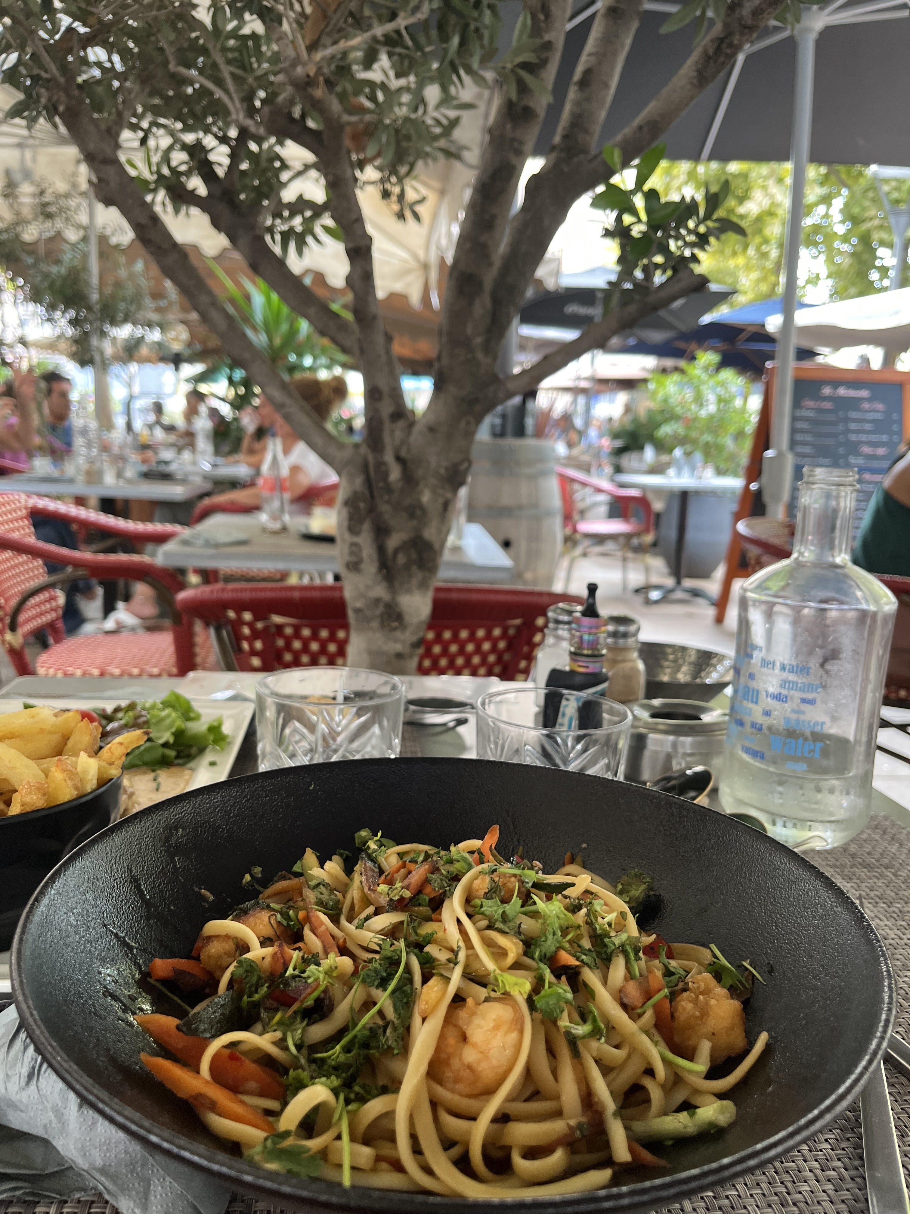 Je suis venue plusieurs fois et c’est le restaurant que je choisis habituellement quand j’ai de la visite pour manger le midi. Je trouve que les plats sont bons mais que la cuisine s’est un peu dégradée ces derniers temps. Je recommande la salade marseille, mais quant aux pâtes aux légumes de la photo, c’est un raté complet, les pâtes sont trop sucrées, immangeables.