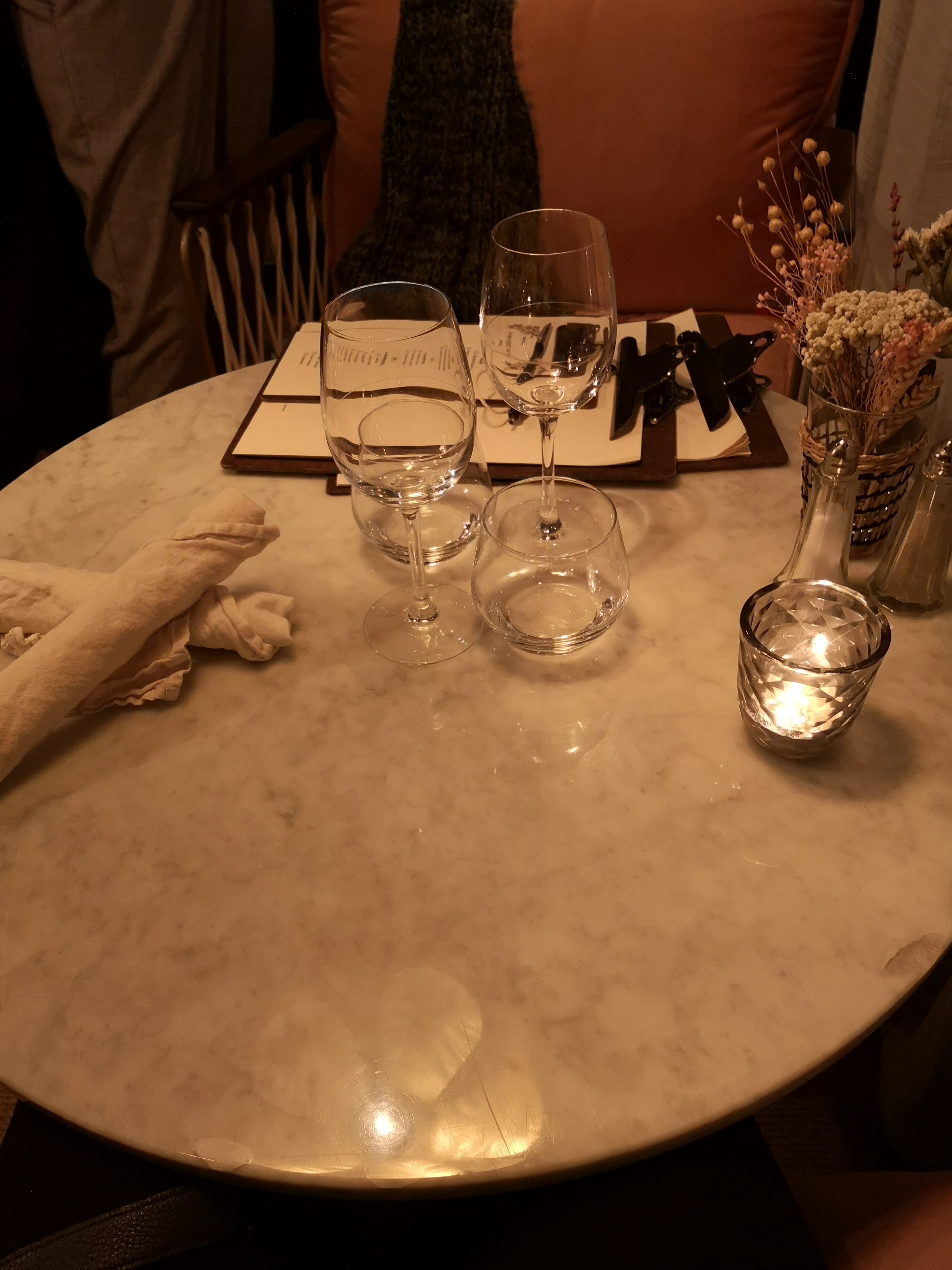 Bonjour, ce fut la première fois dans ce restaurant et aussi que je réservais pour célébrer un anniversaire. J'ai laissé ma confiance et je n'ai pas été déçu, très beau décor, plats délicieux, merci pour la bougie. Le seul petit bémol de rien du tout, l'espace où on était était très cocooning mais les places assises avec des dossiers assez éloignés de la table, on avait un peu mal au dos vers la fin (en revanche très confortable). Néanmoins le personnel incroyable, je conseille vivement, c'était une soirée qui restera gravée