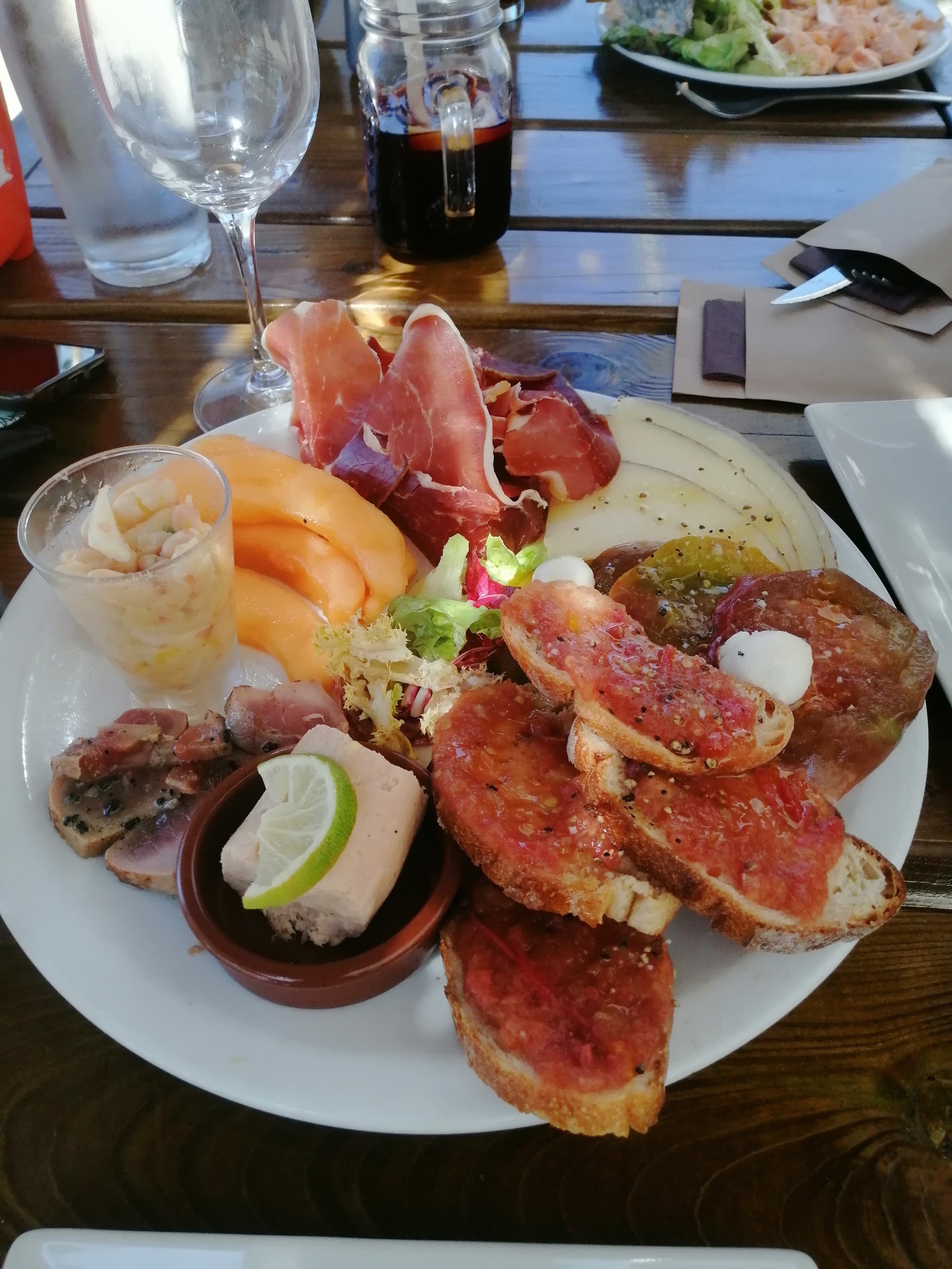 Lieu paradisiaque. J'ai pris un assortiment de tapas c'était très copieux. Bon mais gras notamment la tartine d aioli. Service relativement rapide