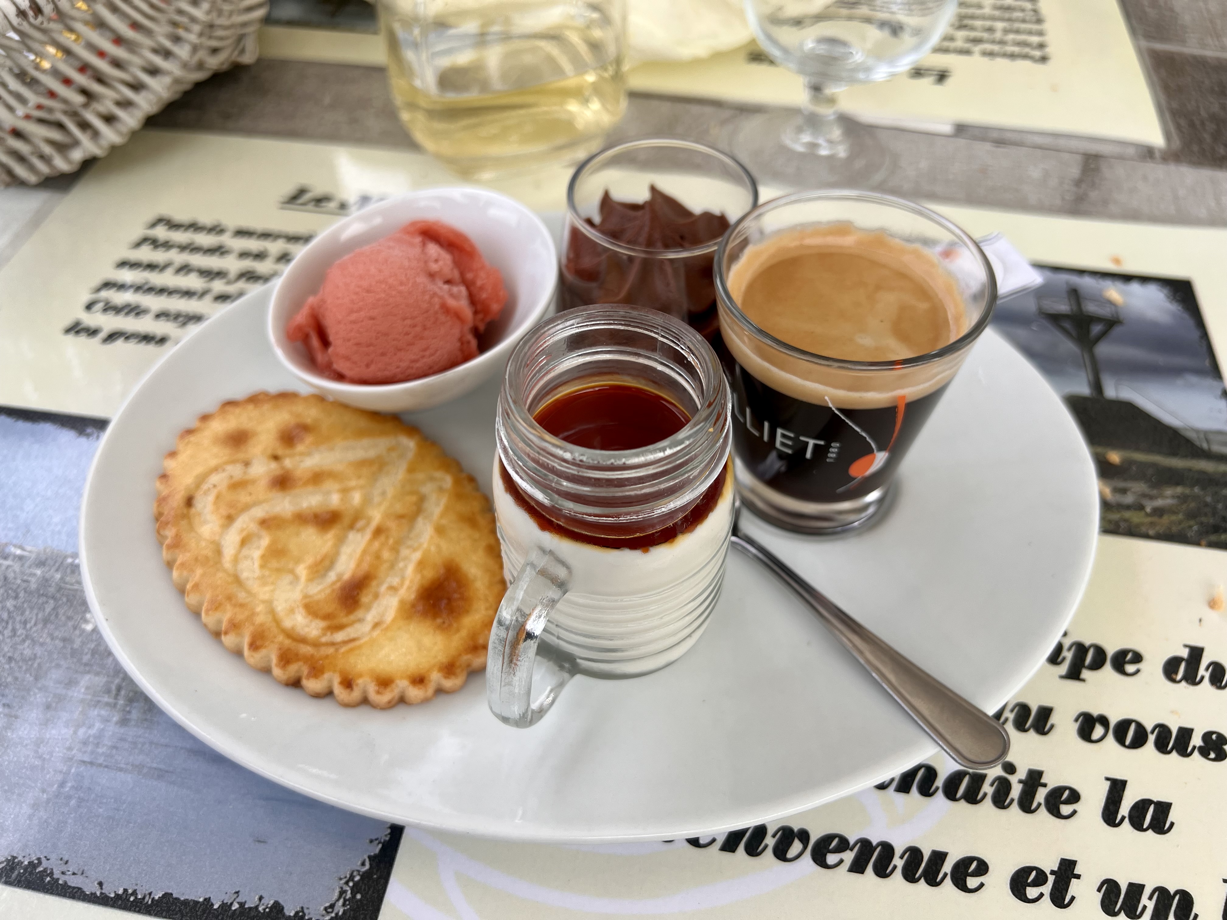 Si vous voulez des moules ça devrait bien se passer par contre si vous prenez une entrée et un plat, il vaut mieux être patient... 2 heures pour avoir 9 huîtres et des moules.... Nous n'avons pas pris de dessert. Il n'y a pas assez de personnel, soit il faut baisser le nombre de couverts ou avoir plus de personnel. Autre info si vous venez pendant l'été avec enfant pour dîner en terrasse pas possible d'avoir un parasol même en plein soleil... C'est un restaurant qui a de la chance d'être sur un site touristique