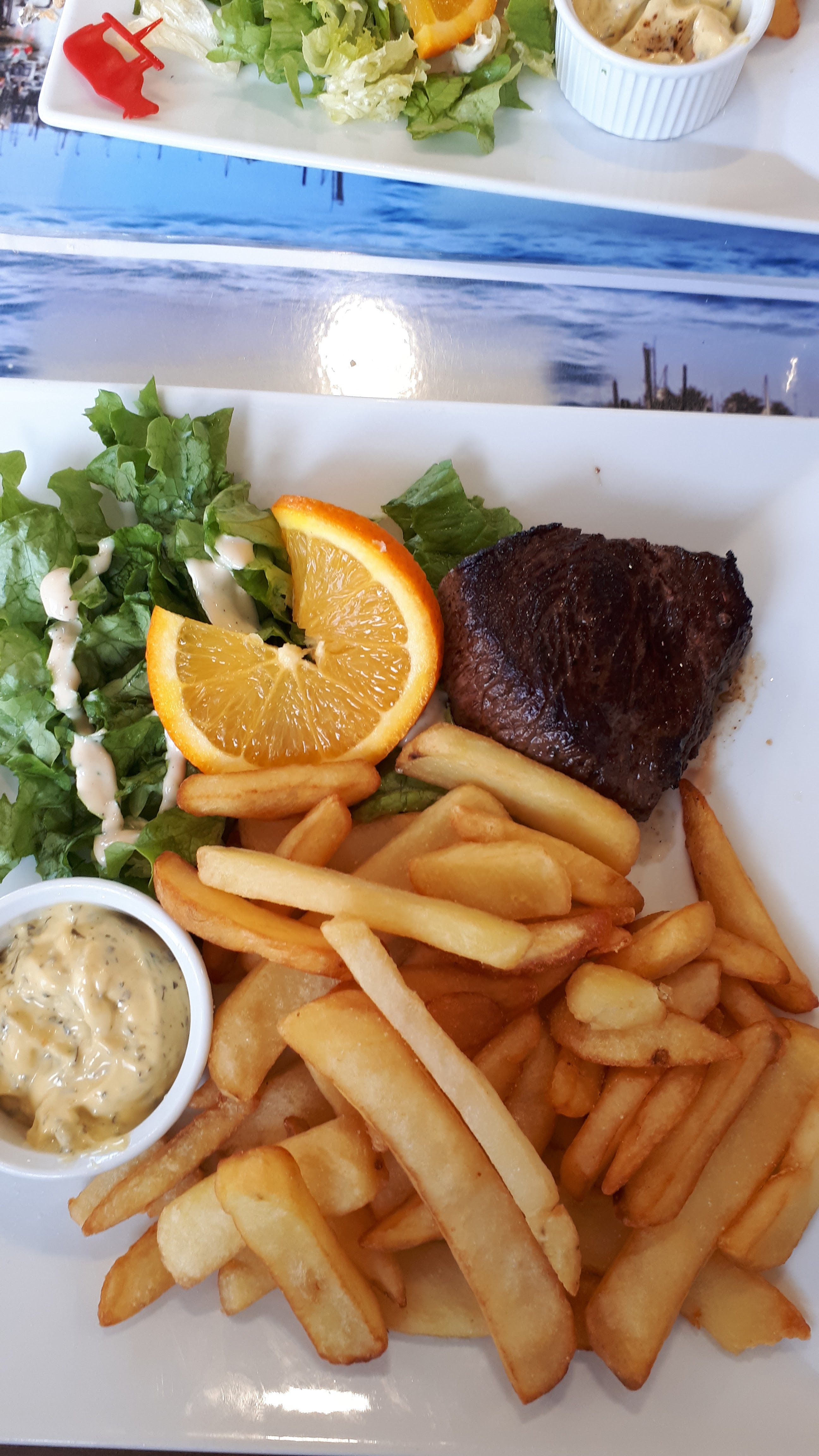 Un petit resto sympa. La terrasse est couverte et protégée du vent, déco très sobre. Les serveuses sont sympas. Nous avons mangé moules frites, pas déçus de notre choix. Tarifs corrects