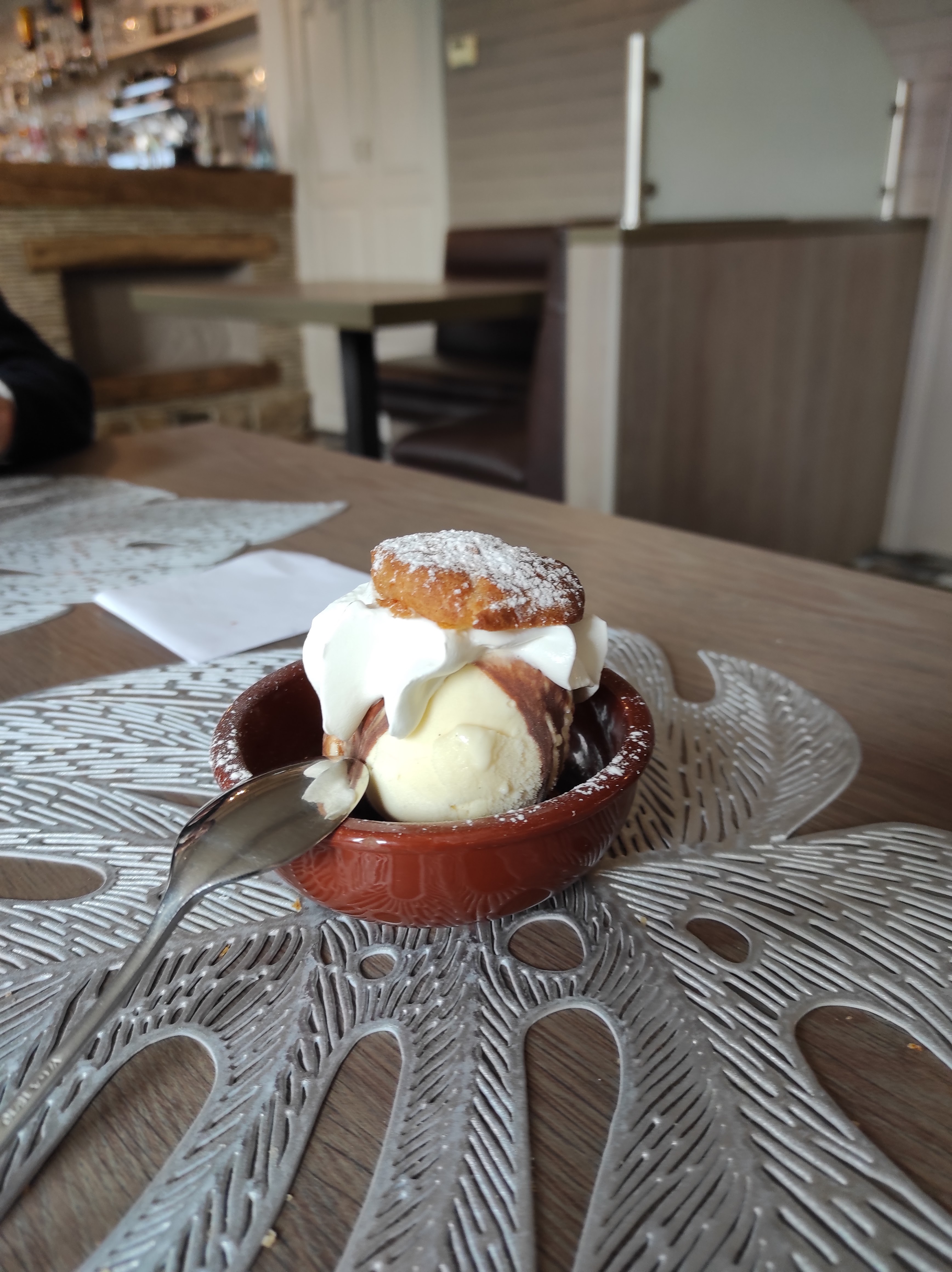 Très bel intérieur bien rénové et plats fait maison excellents.😋 Dessert, brioche façon pain perdu🤪