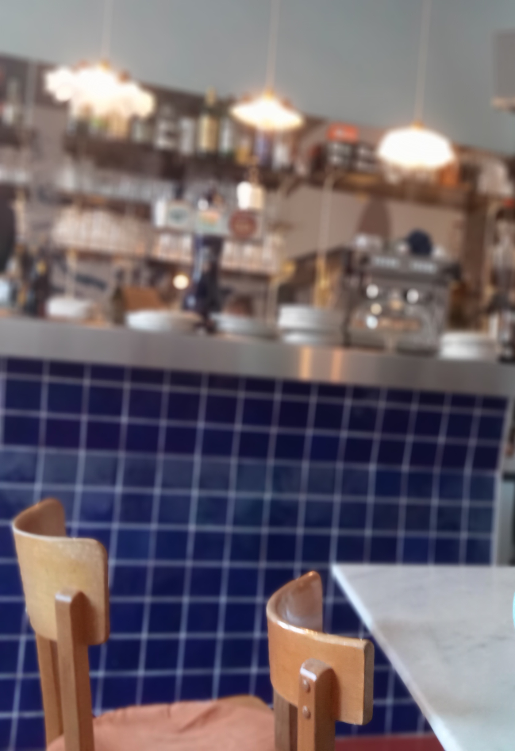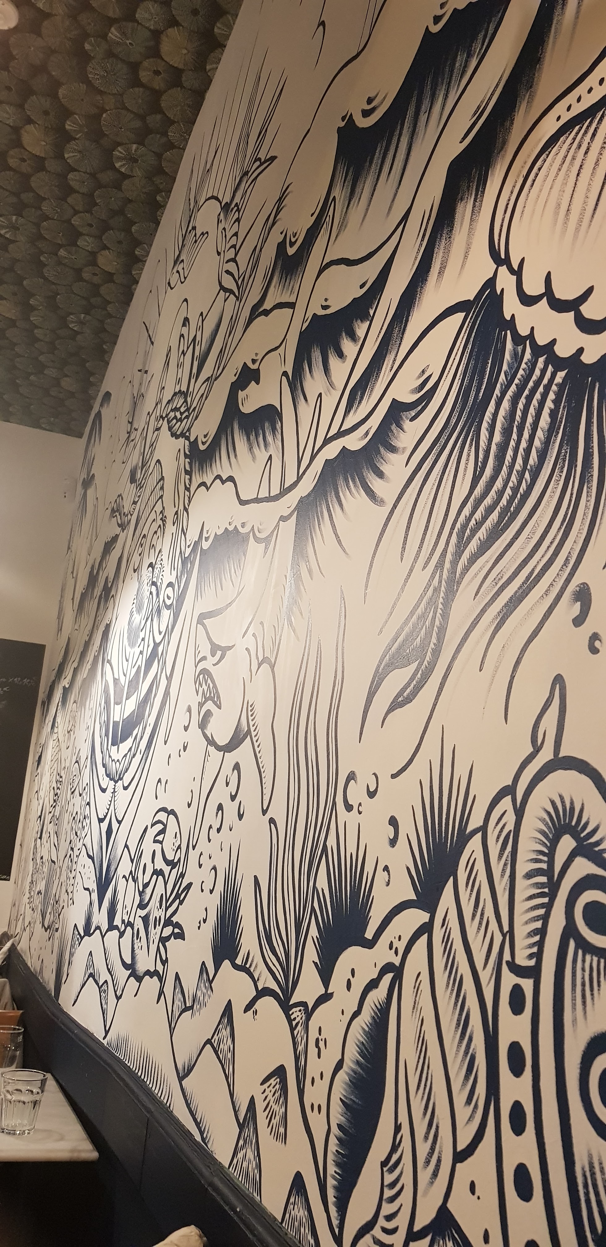 Le restaurant est idéalement situé. L’entrée se fait directement dans la salle, dont l’un des murs est paré d’une fresque géante magnifique, représentant l’emblème du lieu. L’accueil est chaleureux et souriant. On se sent très vite à l’aise. La décoration est réfléchie et harmonieuse, des murs au plafond en passant par la vaisselle qui est surprenante, mignonne et intemporelle. L’ambiance musicale est conviviale et joyeuse. De nombreux morceaux nous rappellent de bons souvenirs, ajoutant à l’impression de confort dans ce lieu déjà très agréable. Enfin, les plats servis sont cuisinés avec envie, on le sent à la dégustation. La qualité des produits est là, l’esthétique dans l’assiette aussi. Les boissons proposées accompagnent admirablement les plats. C’est beau, c’est bon, c’est convivial et chaleureux : c’est parfait !