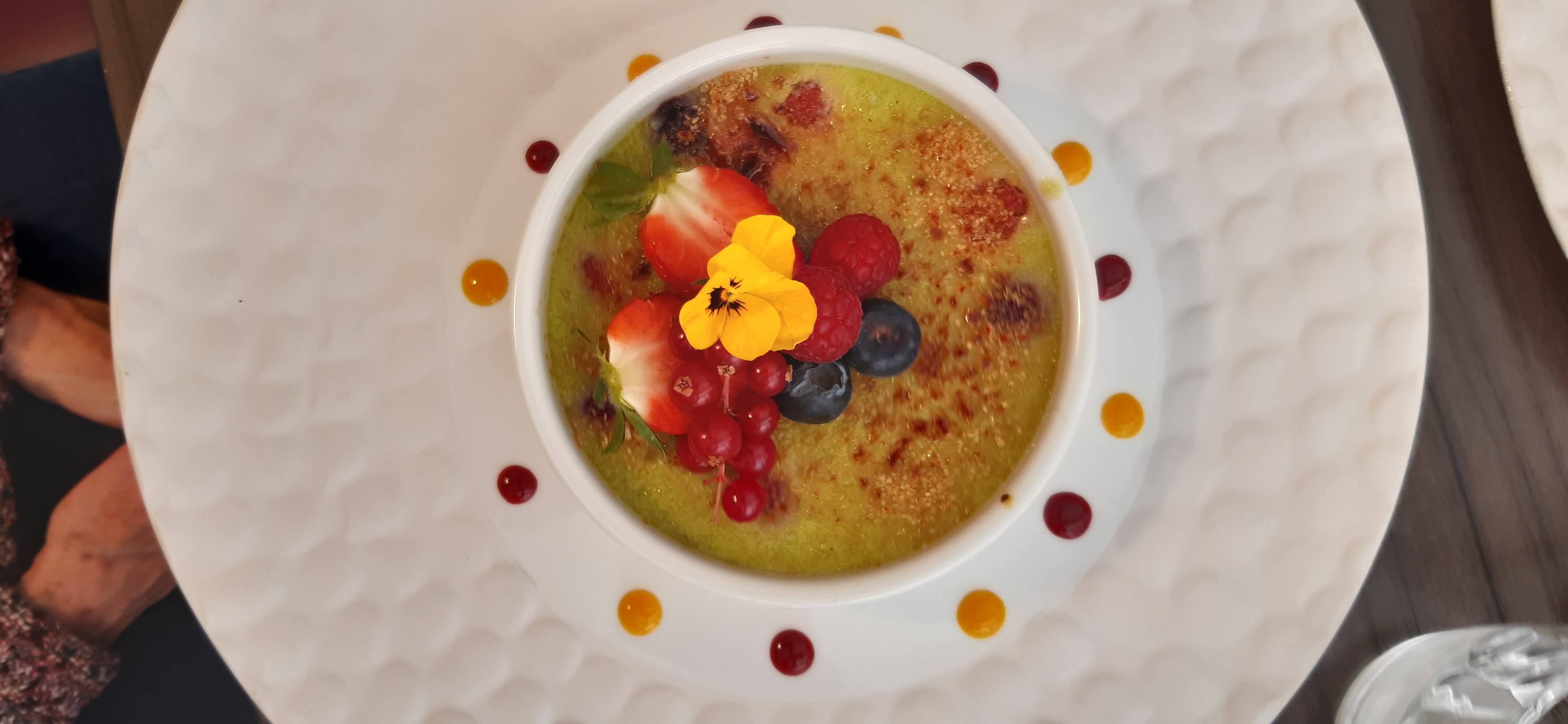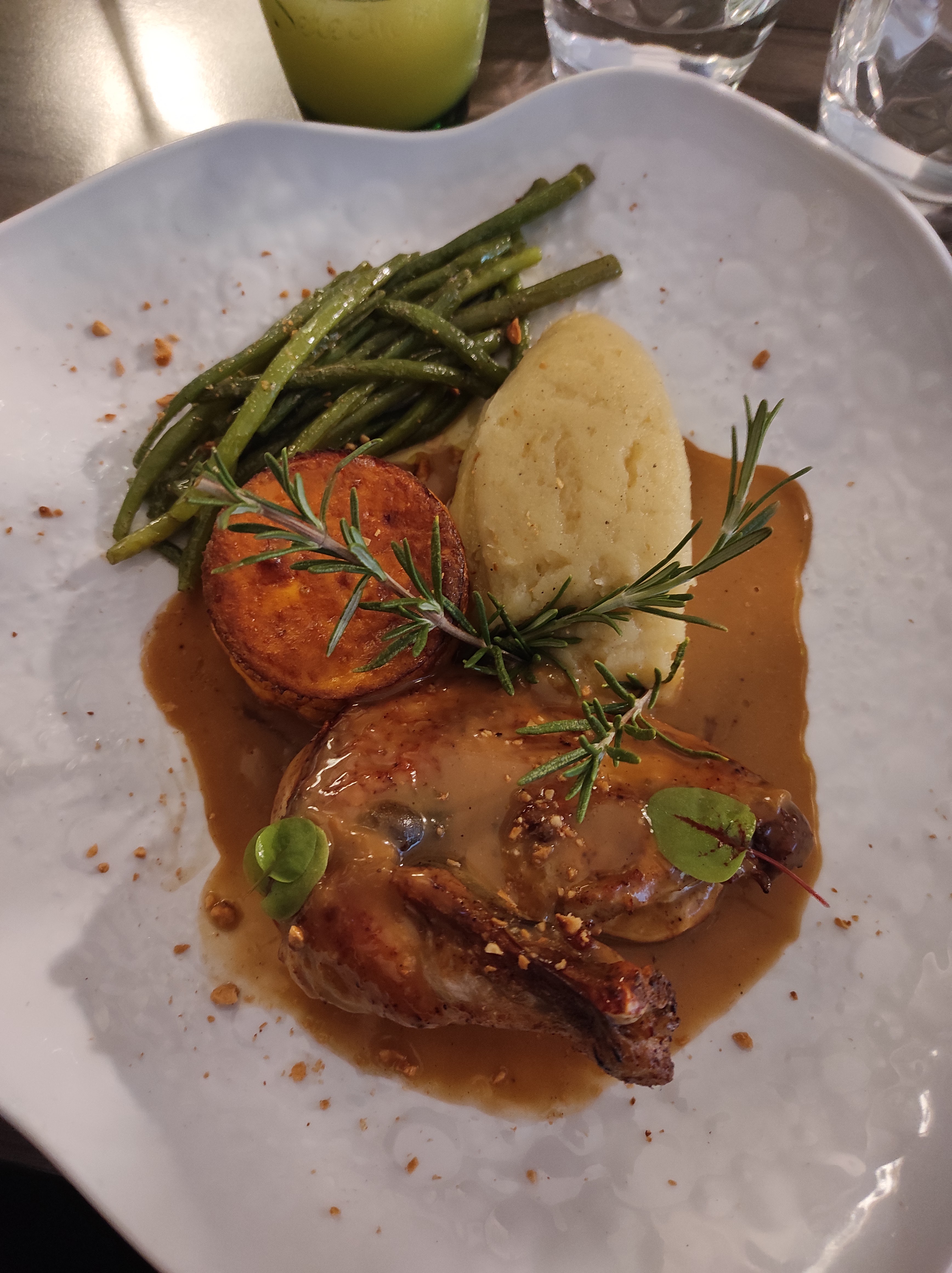 Tout était super. La serveuse est super accueillante, et sympa, le chef travaille des super produits, et sa cuisine est très savoureuse. Cuisine moderne alliée aux produits du terroir, le top 👍🏻. Continuez comme ça, j’espère que vous réussirez à sortir plus fort de la période difficile que vous venez de traverser avec le Covid car vous le méritez. A bientôt.