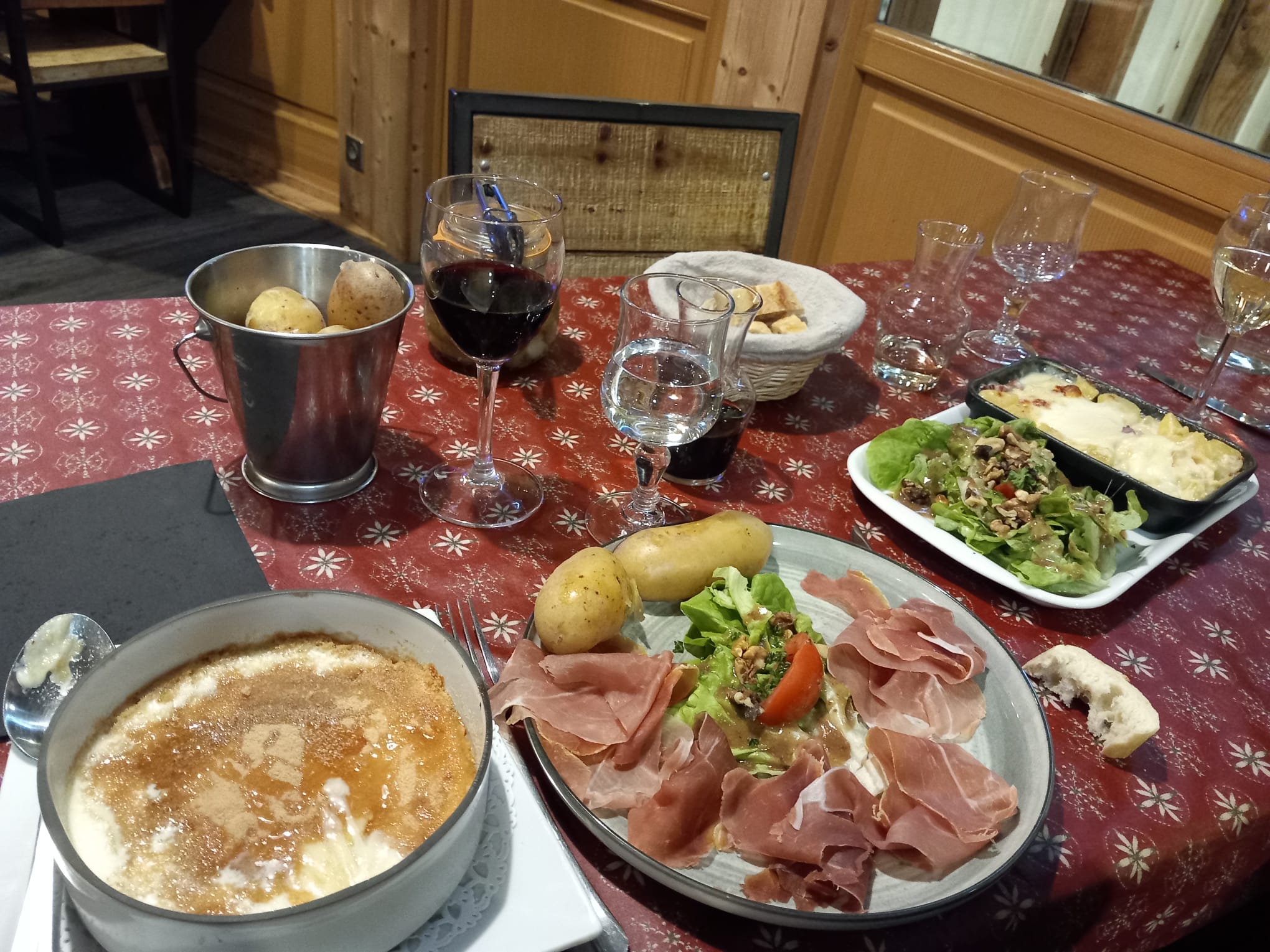 Restaurant avec une décoration typique des montagnes, serveurs très sympathiques mais comparé aux autres restaurants il n’y a pas grand choix dans les plats et nous avons été déçu de la fondue savoyarde. Besoin de réclamer plusieurs fois de l’eau, pas mal d’attente entre l’apéritif et le plat car les serveurs couraient partout.