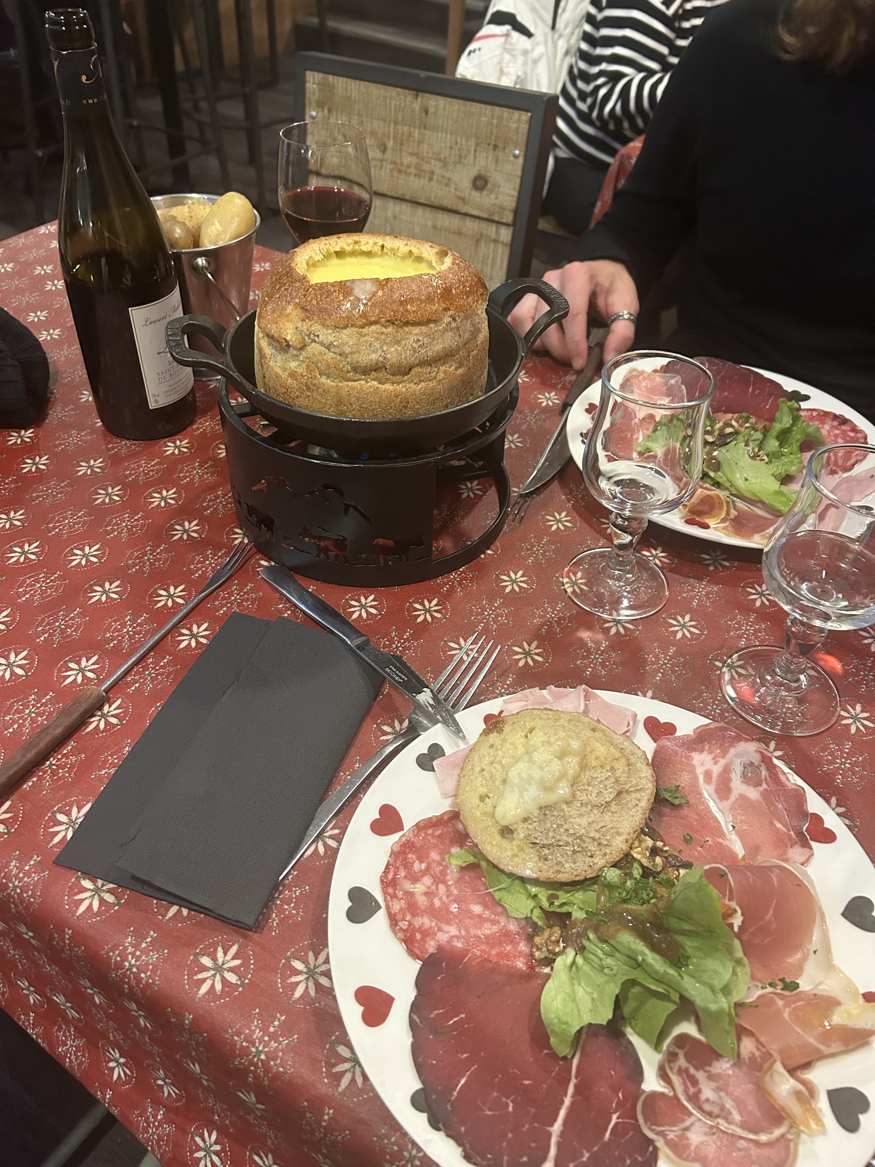 Chouette resto, personnel accueillant. Mon copains et moi avons goûté la fondu aux morilles servie dans un gros pain ainsi qu’une assiette de charcuterie et des pommes de terre. Plat très copieux même pour 2 personnes, néanmoins très bon. Nous avons passé un très bon moment. Je recommande.