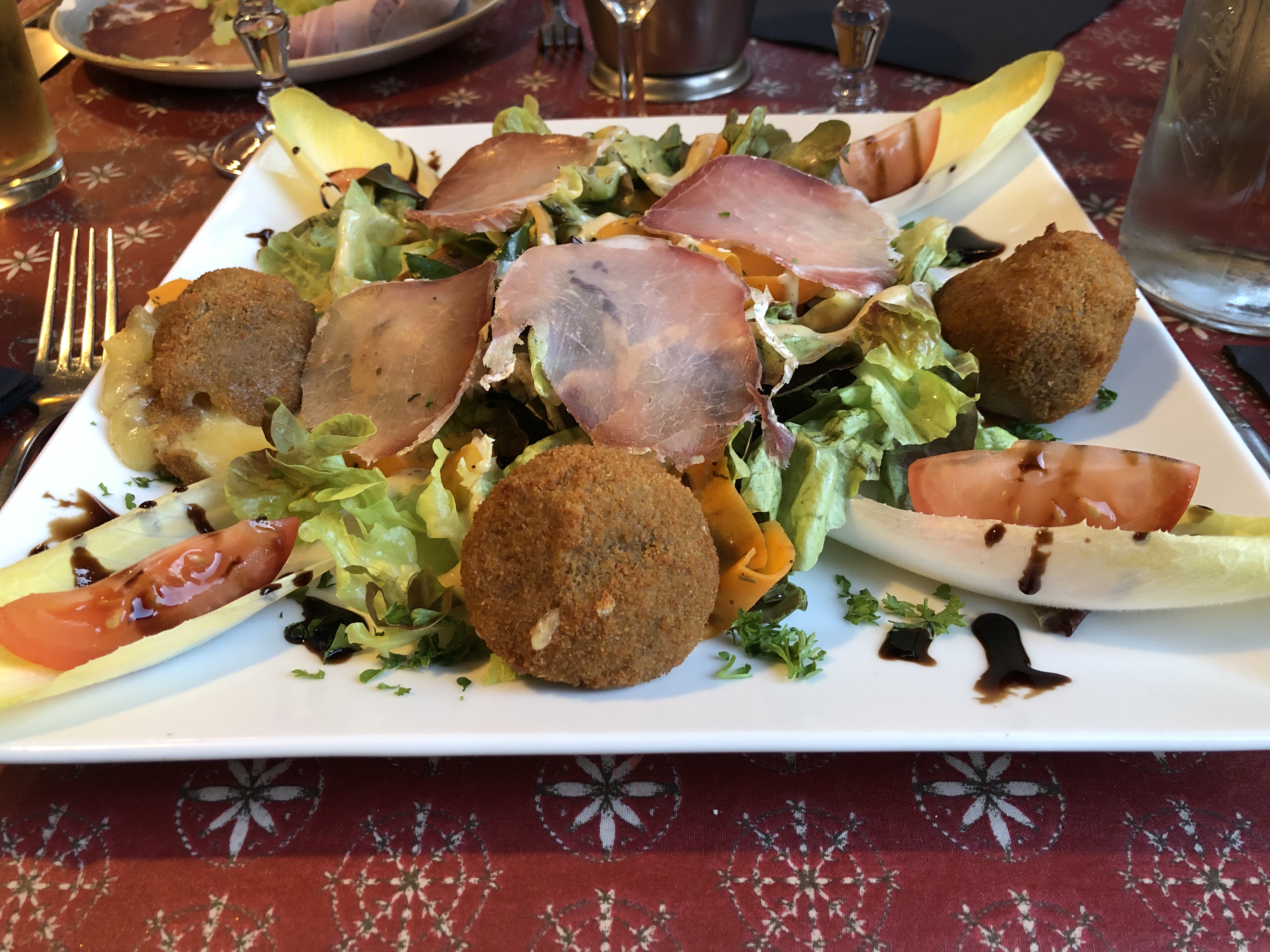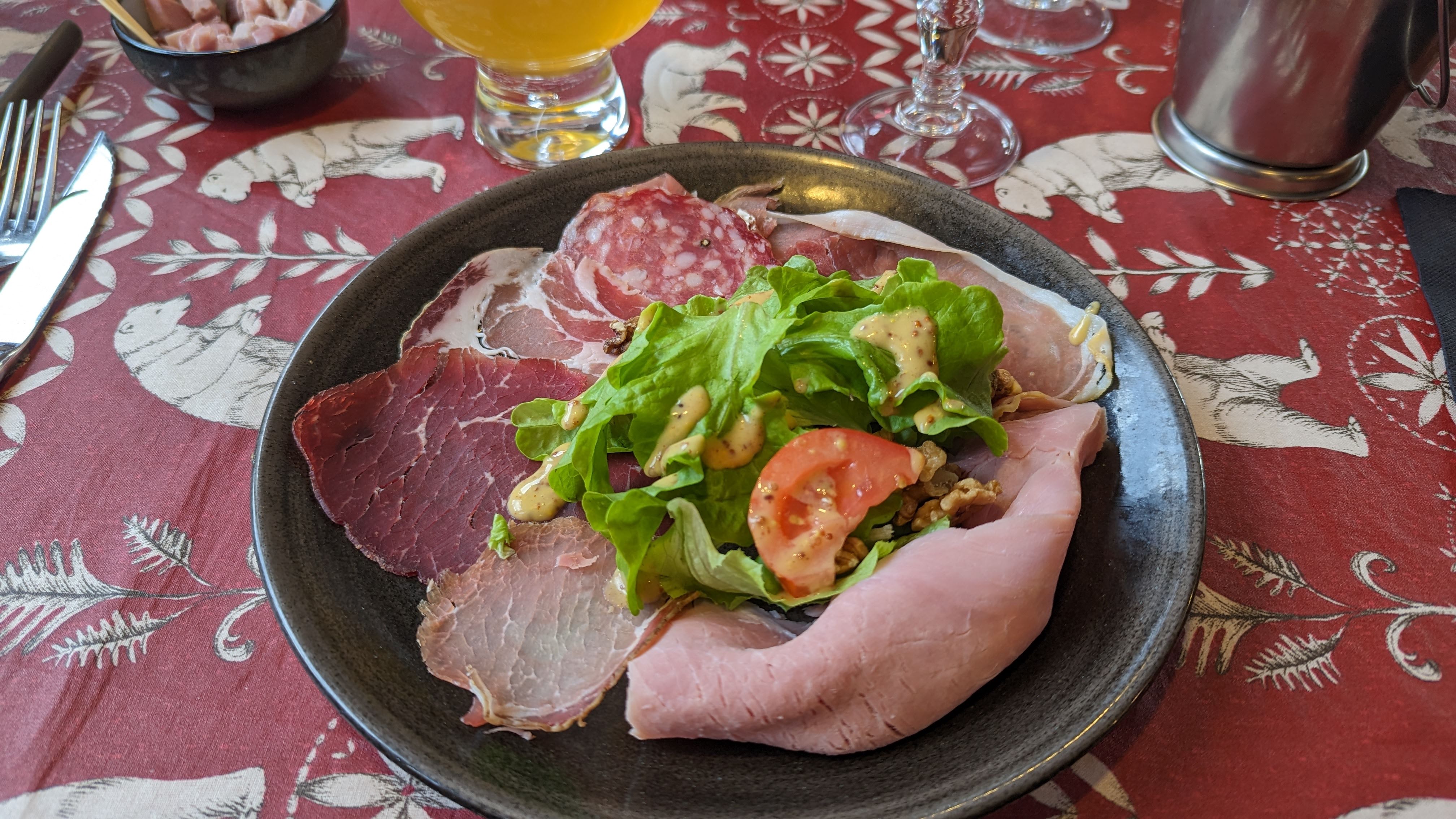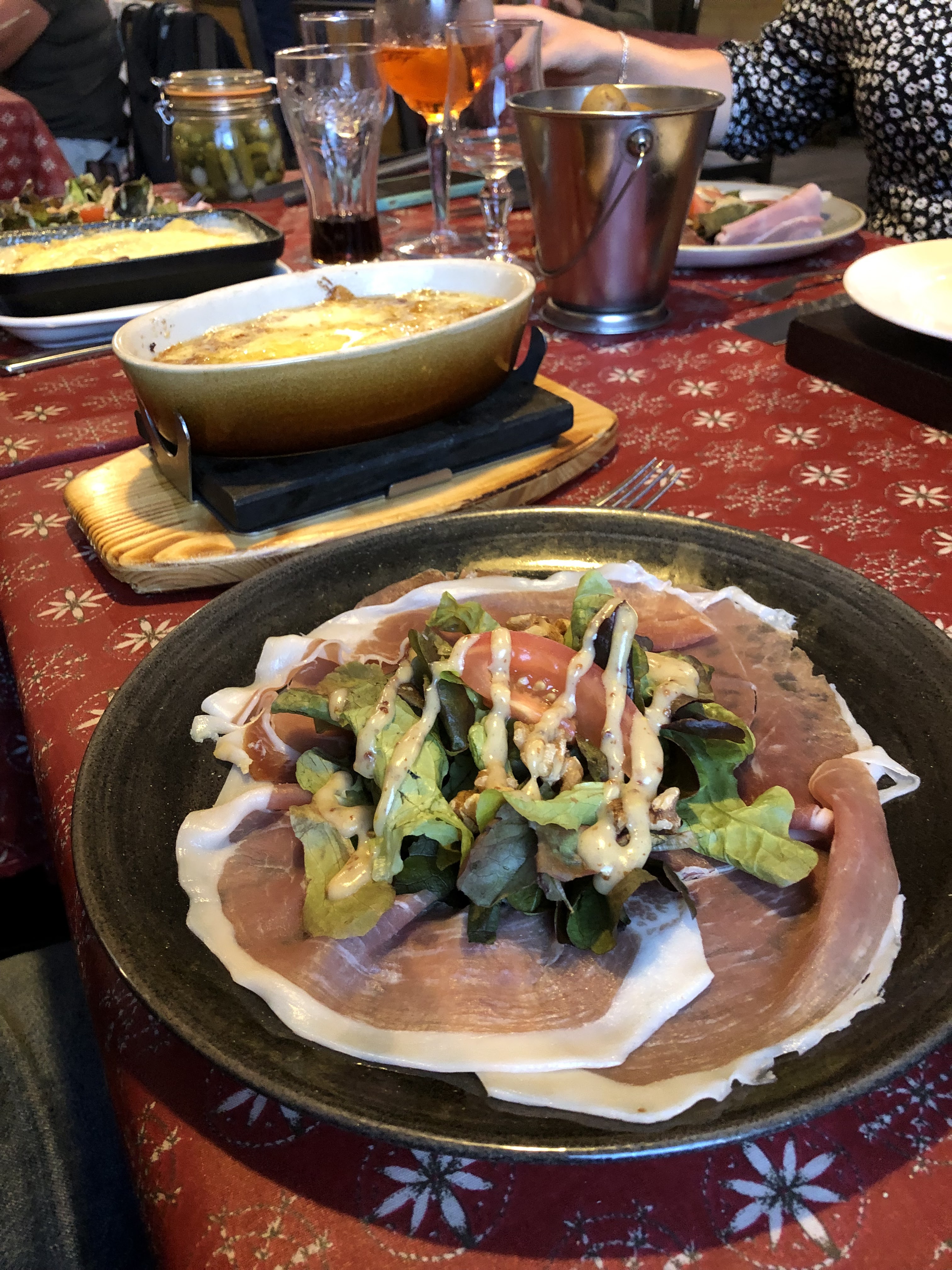 Nous avons très bien mangé mais ne pensez pas demander d'emporter le reste de votre plat, la patronne nous refuse un doggy bag de 3 pommes de terres ( pourtant une obligation légale) nous expliquant qu'elle réutilisera nos restes pour un autre plat ... 😱