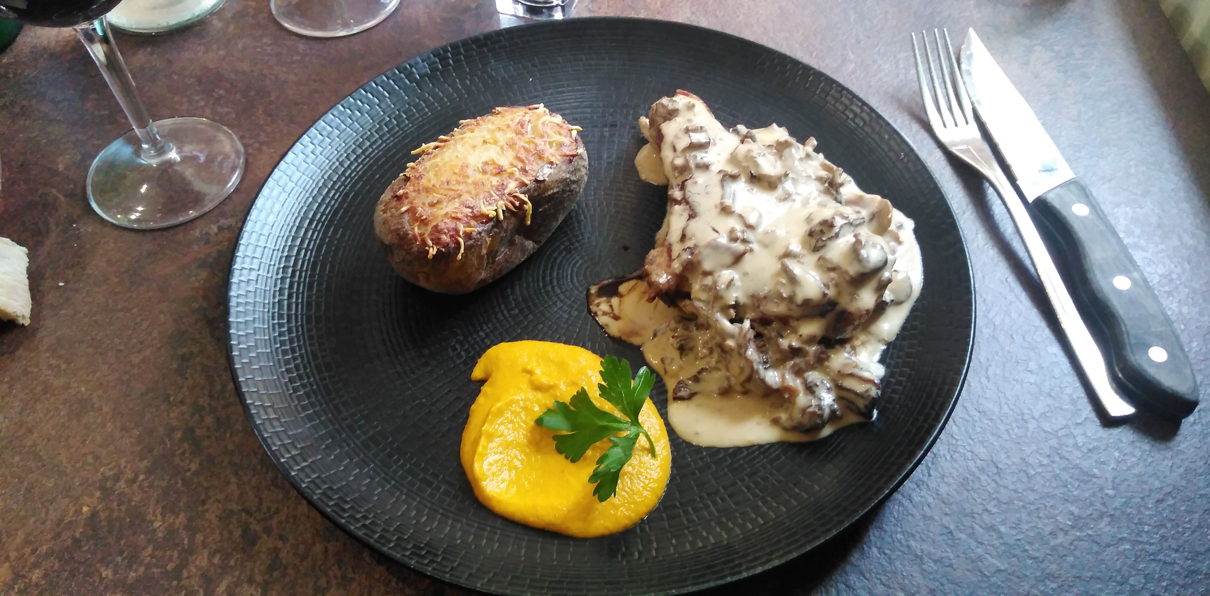 Nous avons attendu avec impatience une bonne soirée avec un bon repas. Malheureusement, nous avons été totalement déçus. On a tous les deux commandé la côte de veau à la sauce de morilles, cuisson rosée. Une portion est arrivée avec une côte de veau qui n’était pas bien rôtie, mais qui avait plutôt l’impression d’avoir été bouillie. La viande était de mauvais goût, les morilles étaient complètement dénuées de goût et donc toute la sauce. La pomme de terre et les légumes étaient ok. L’autre portion était absolument immangeable. Au lieu de la côte de veau, on a servi insolentement un tendron de mauvaise qualité qui n’était que de la graisse et du cartilage et était aussi bouillie et insipide que la côte, tout simplement dégueulasse. On ne comprend pas comment un repas comme ça peut quitter la cuisine. Après ce repas, tout ce qu’il nous reste à dire, c’est que ce restaurant n’est absolument pas recommandé.