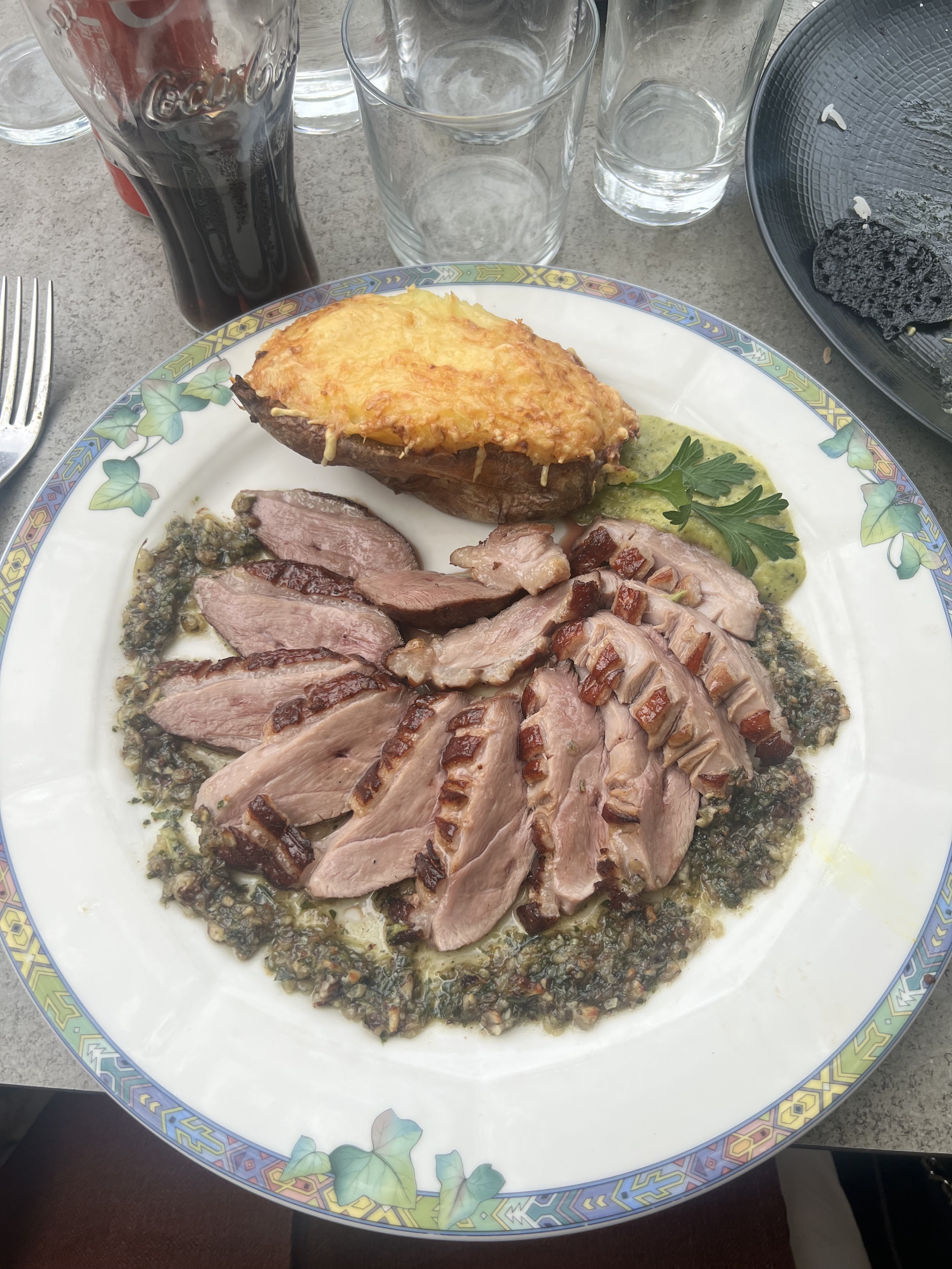 Moment très agréable. Le cadre est superbe. Un très bon déjeuner. Entrée/plat + café 43€ Le prix est très correct au vu de la qualité des plats