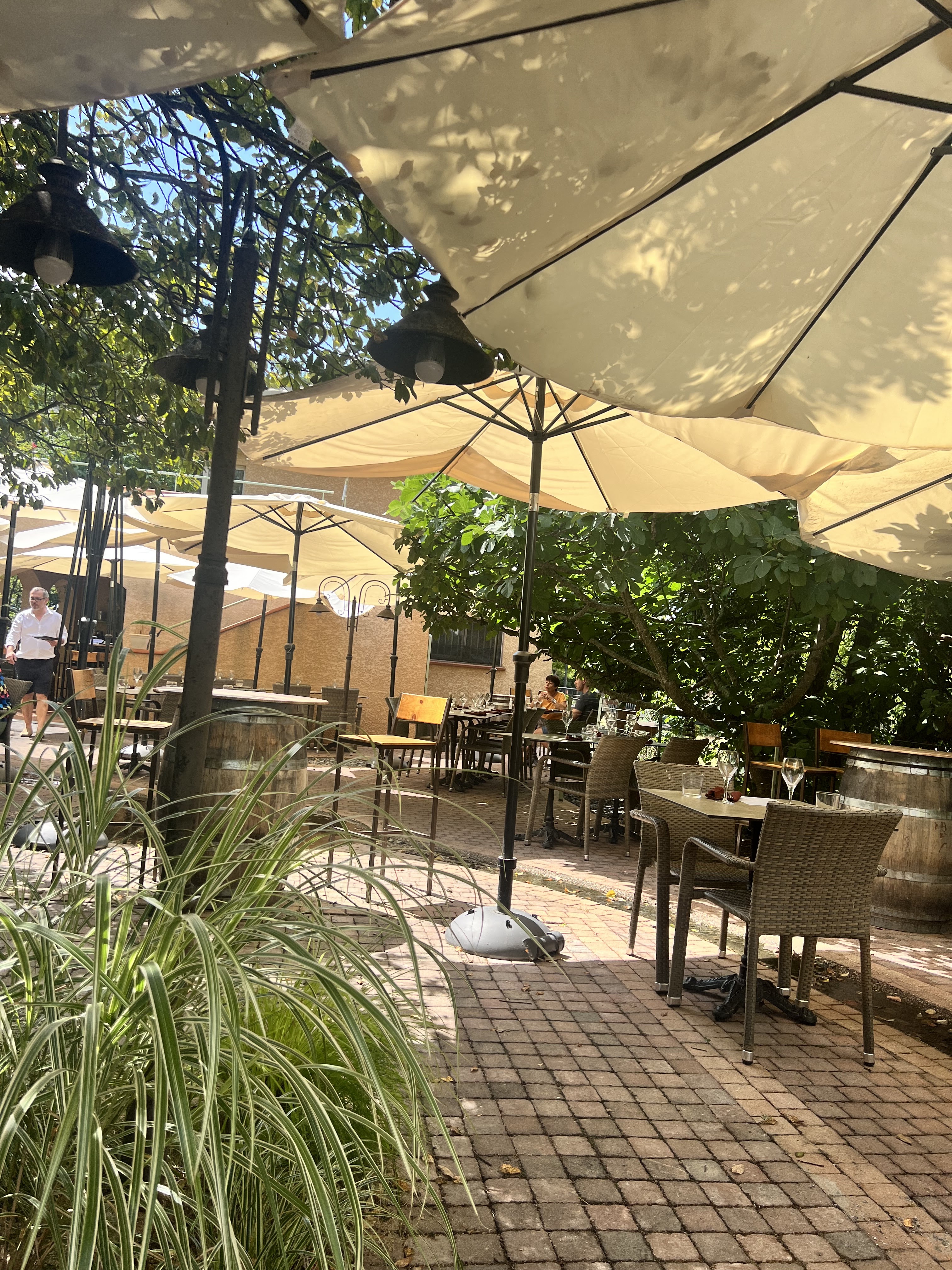 Lieu très agréable, au calme sous l'ombre des arbres et des parasols. Menu du jour excellent pour un prix très correct.