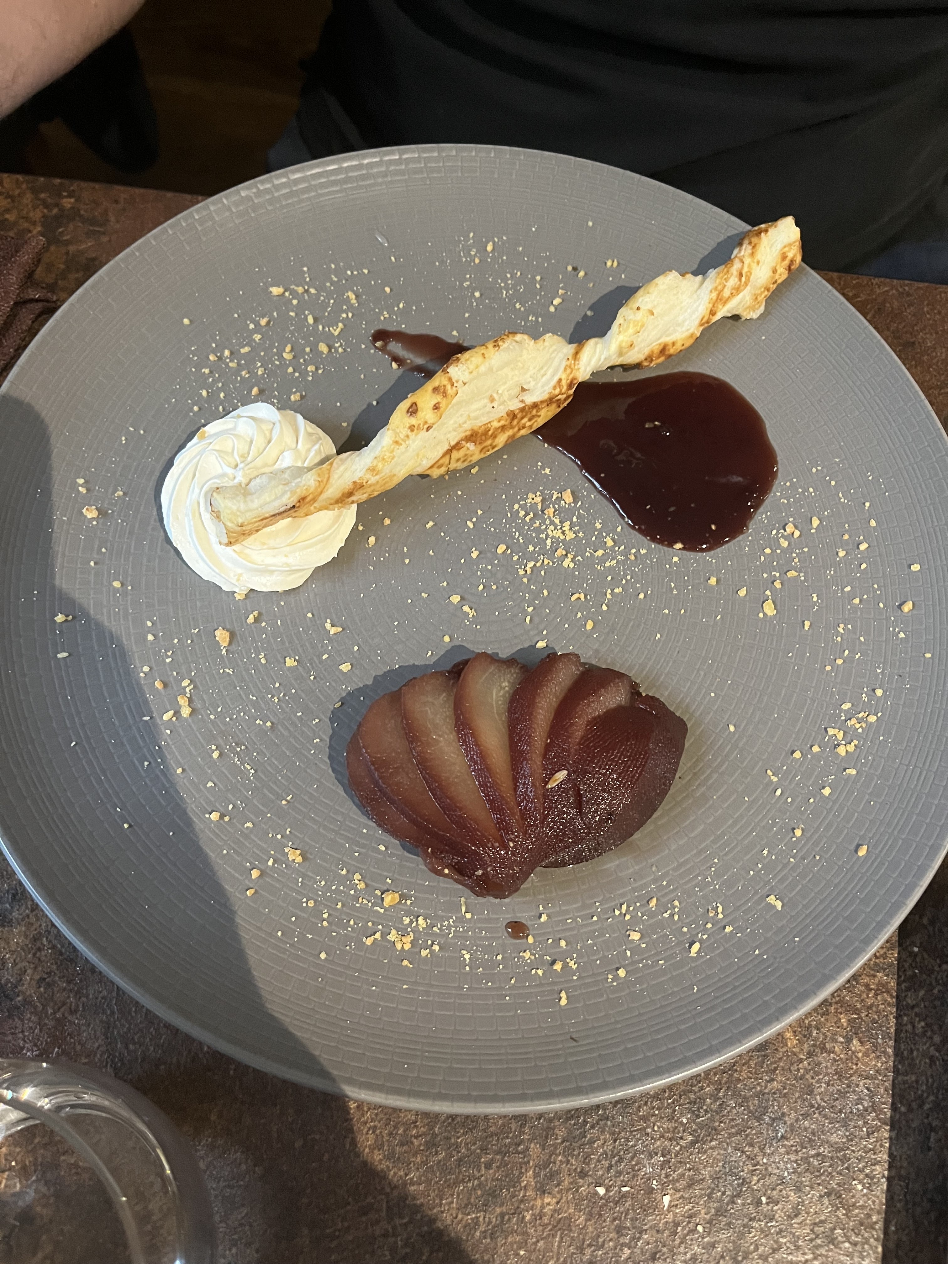 C'est bon mais trop gras et trop salé. Le vin est très cher. Dessert pas génial (menu 17 euros). Et surtout service très long; arrivés à 12h10 nous avons terminé le dessert à 13h43.