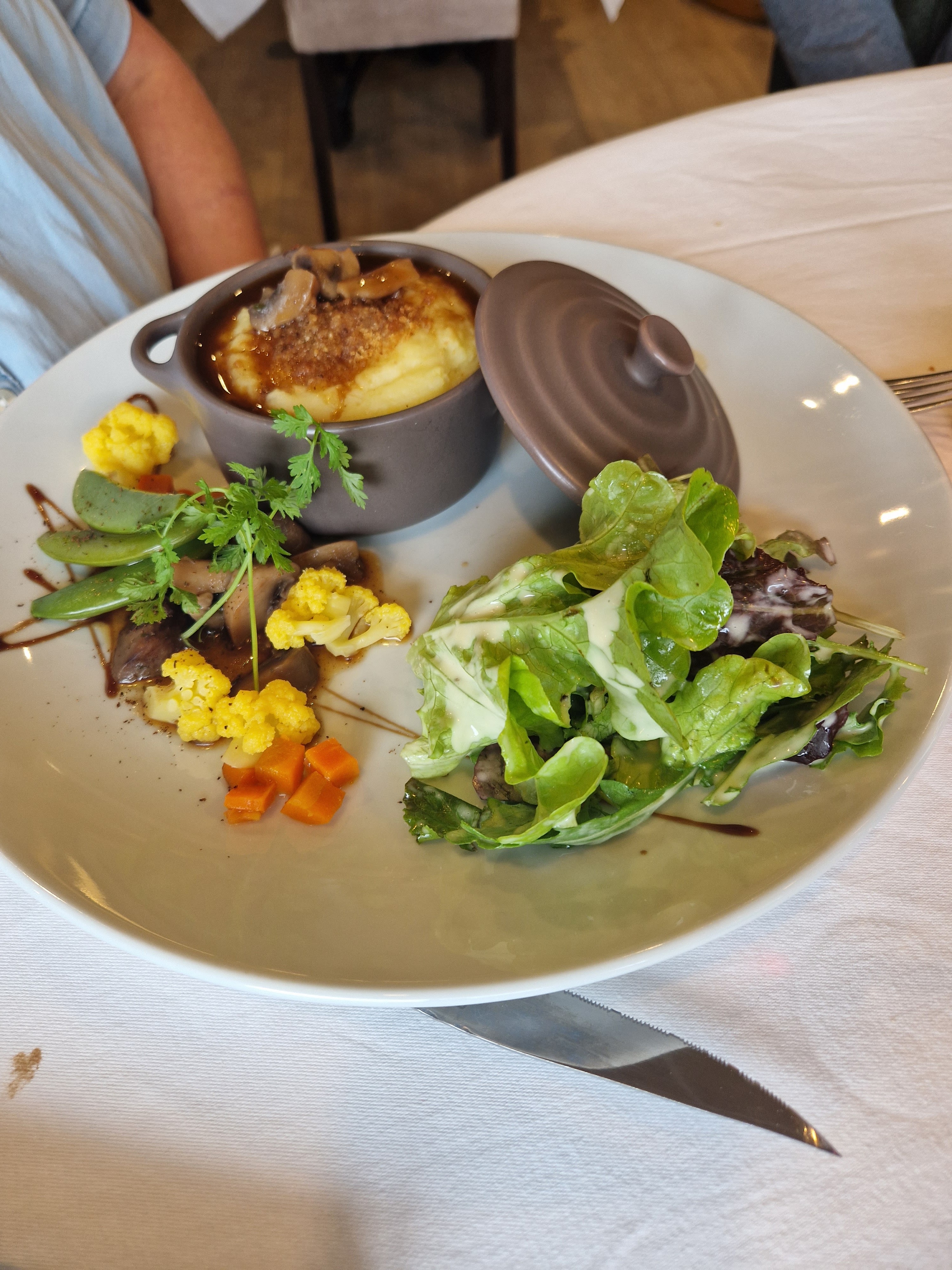 Rien à dire ! Un excellent repas et l'alternative végétarienne proposé pour le plat était juste parfaite. Un repas sans faute du début jusqu'à la fin. Le personnel du restaurant est très serviable et à l'écoute.