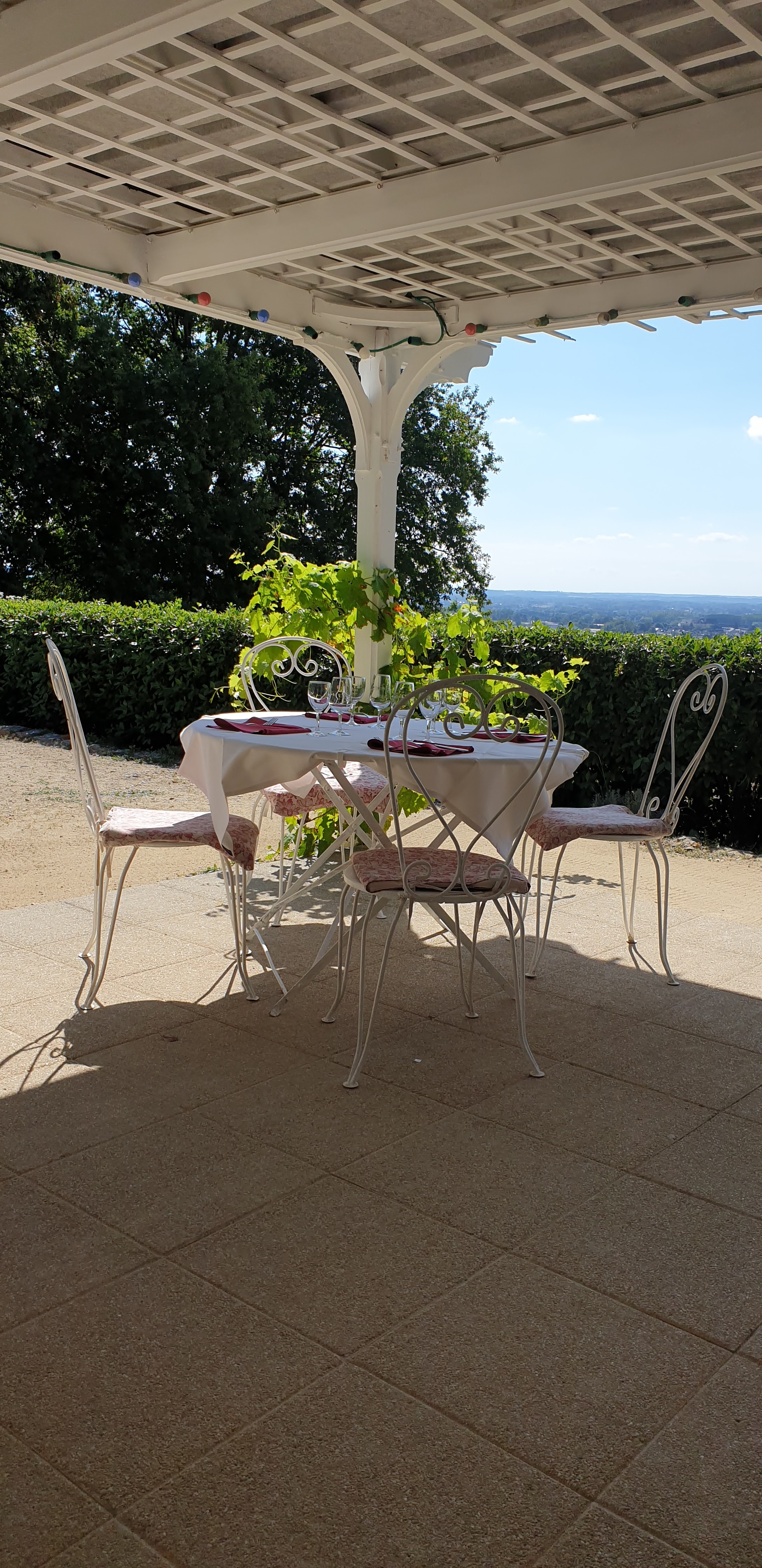 Repas sous la tonnelle avec une magnifique vue sur les vignes, repas excellent ainsi que l'accueil