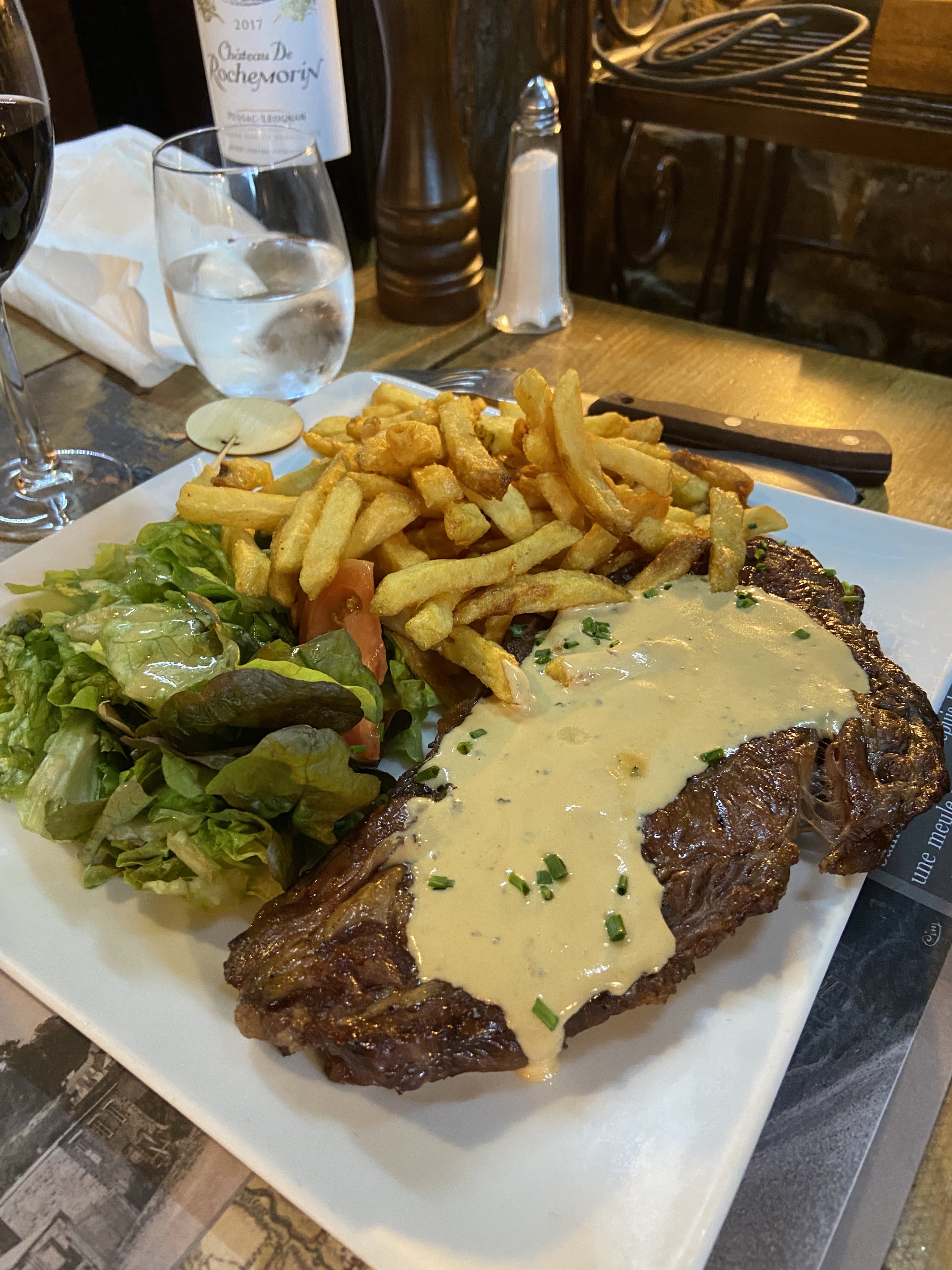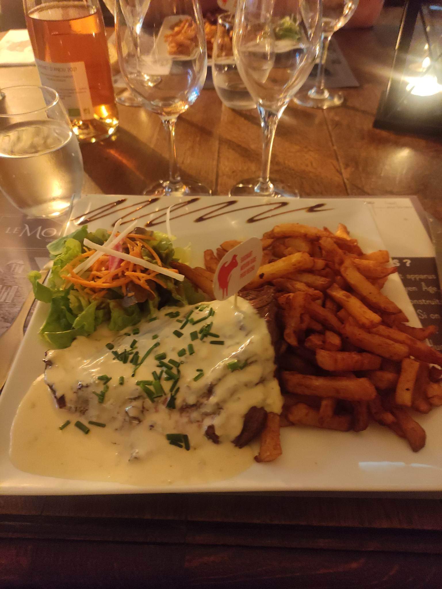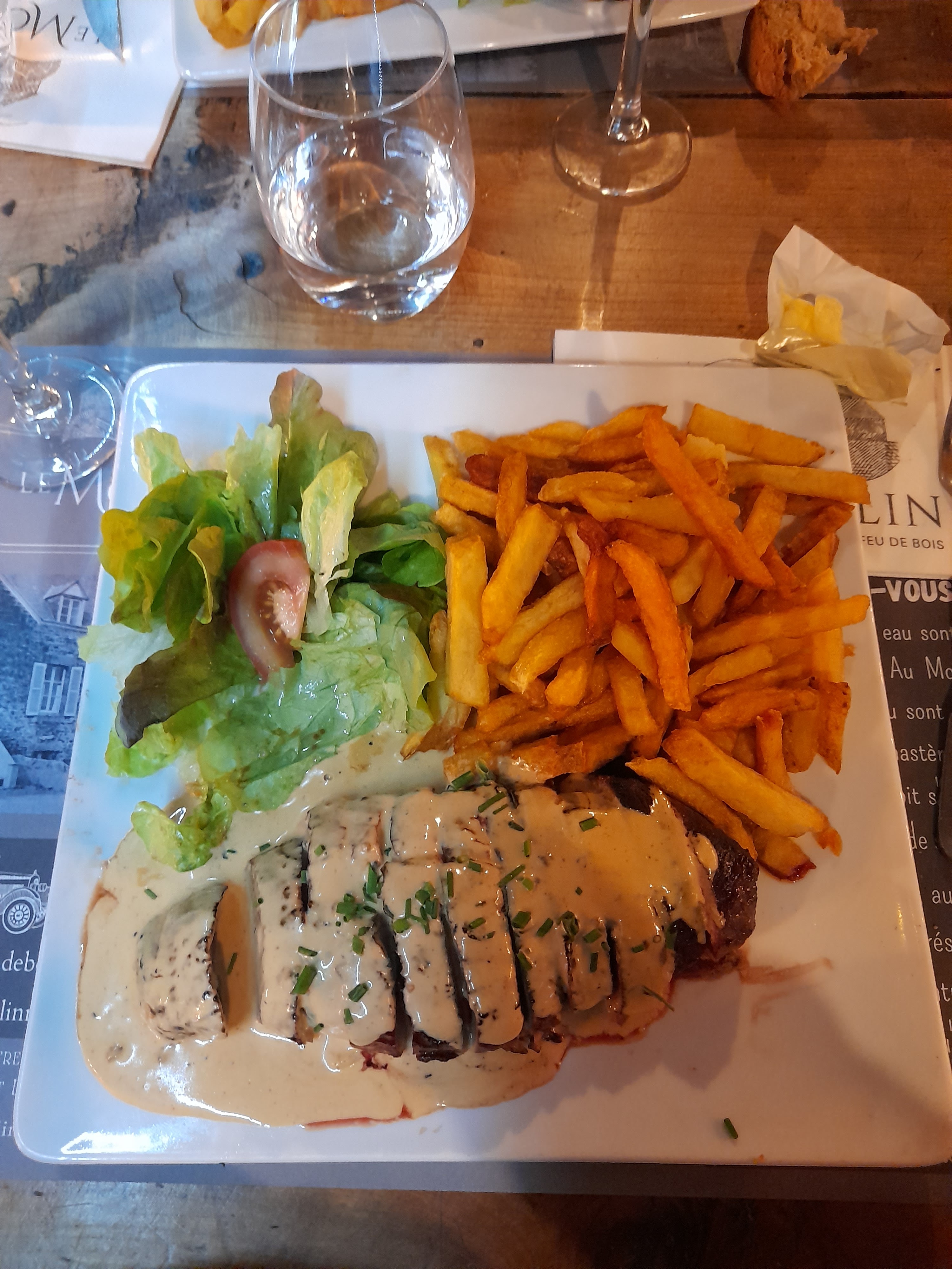 Restaurant très bruyant, service très long (1h d'attente pour les plats) avec de la viande trop cuite qui baigne dans la sauce accompagnée de frites correctes et d'une vinaigrette à la salade...bien décevant. Des plats sont servis avec la sauce sur la viande et d'autres plats ont la sauce à part, la réponse du gérant est que ça a toujours été comme ça et que c'était plus simple à gérer. Nous avons été bien déçus par le restaurant.