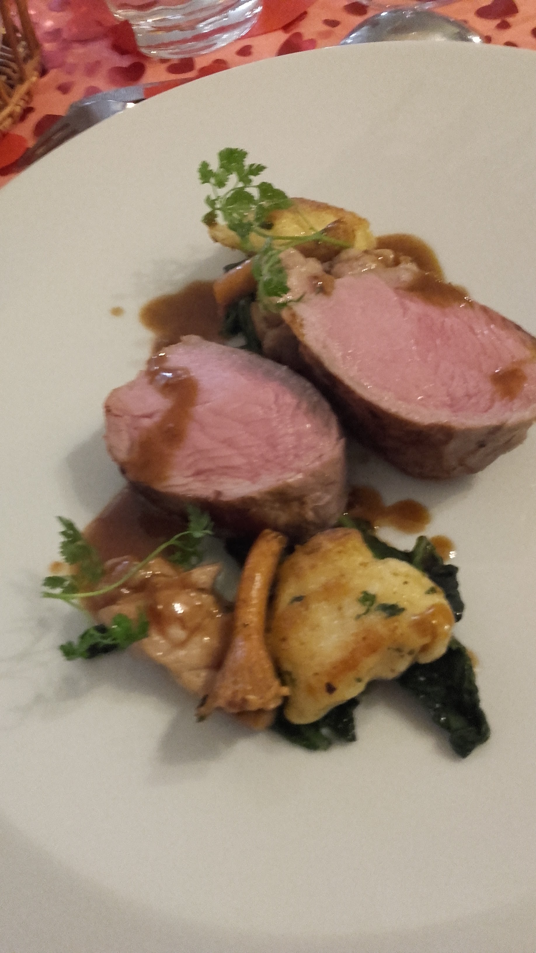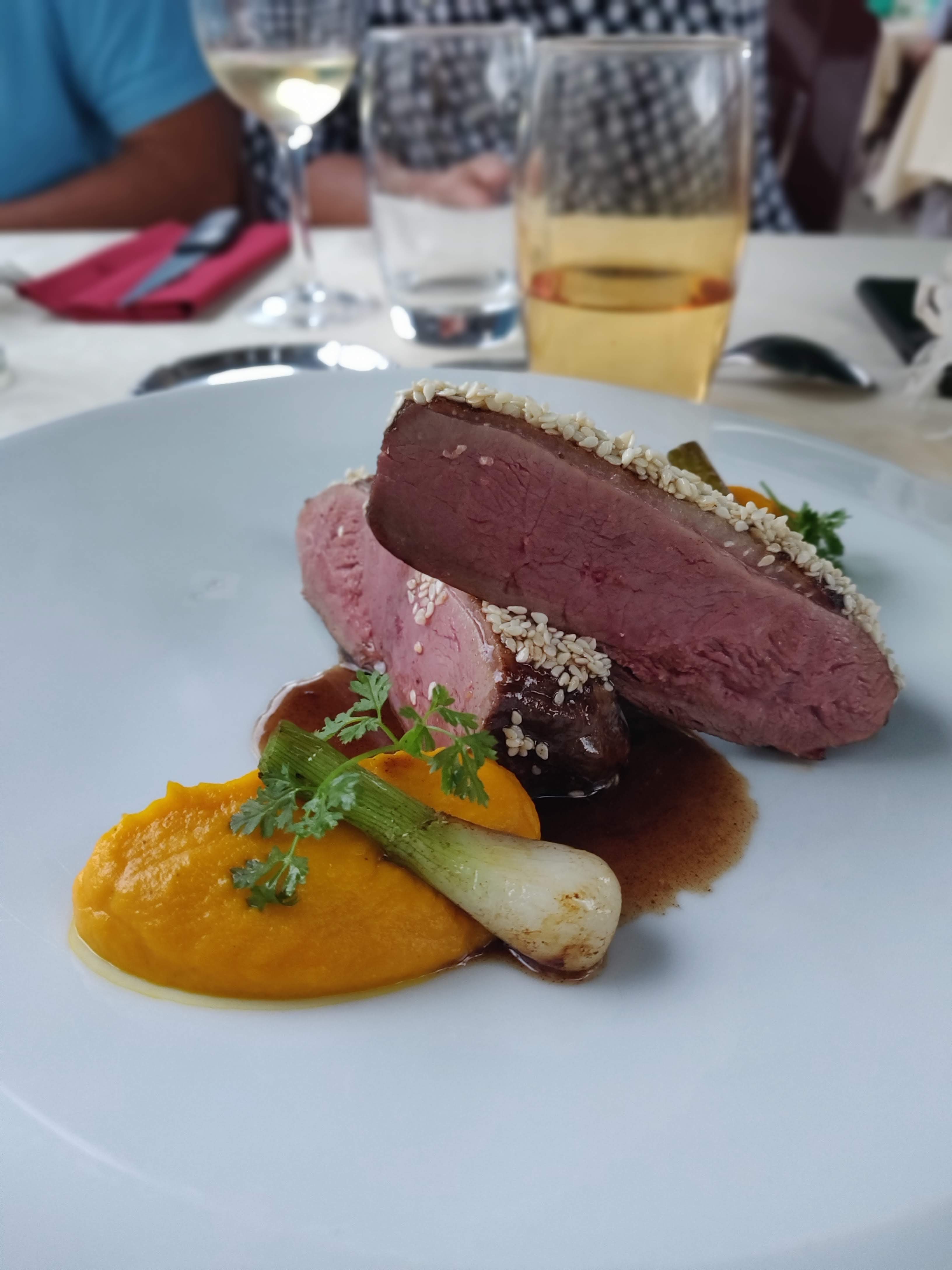 Excellent restaurant foie gras poêlé avec figues Le cerf mijoté plat de saison en octobre Un dessert avec glace chocolat blanc un délice Le cadre extérieur superbe La patronne adorable et marrante au petit soin pour ses clients