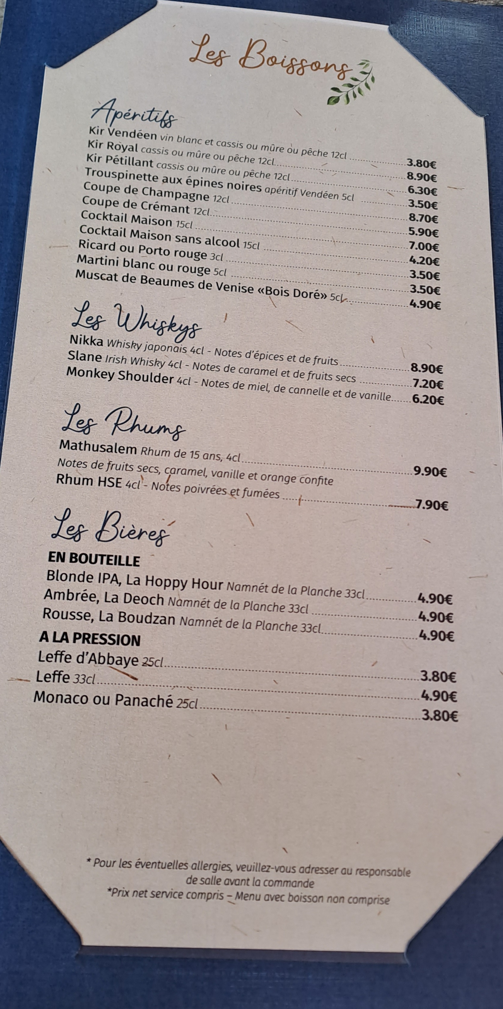 Lieu convivial, on y mange très bien pour un prix raisonnable. Une très bonne adresse à recommander en Vendée.